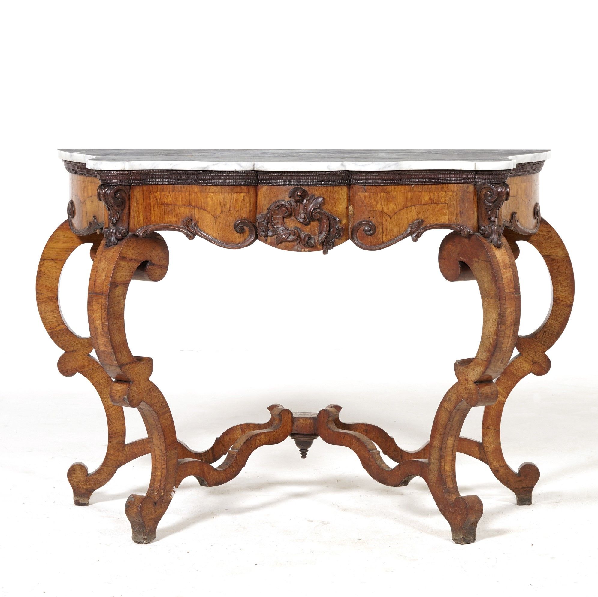 Consolle Luigi Filippo in legno lastronato. XIX secolo