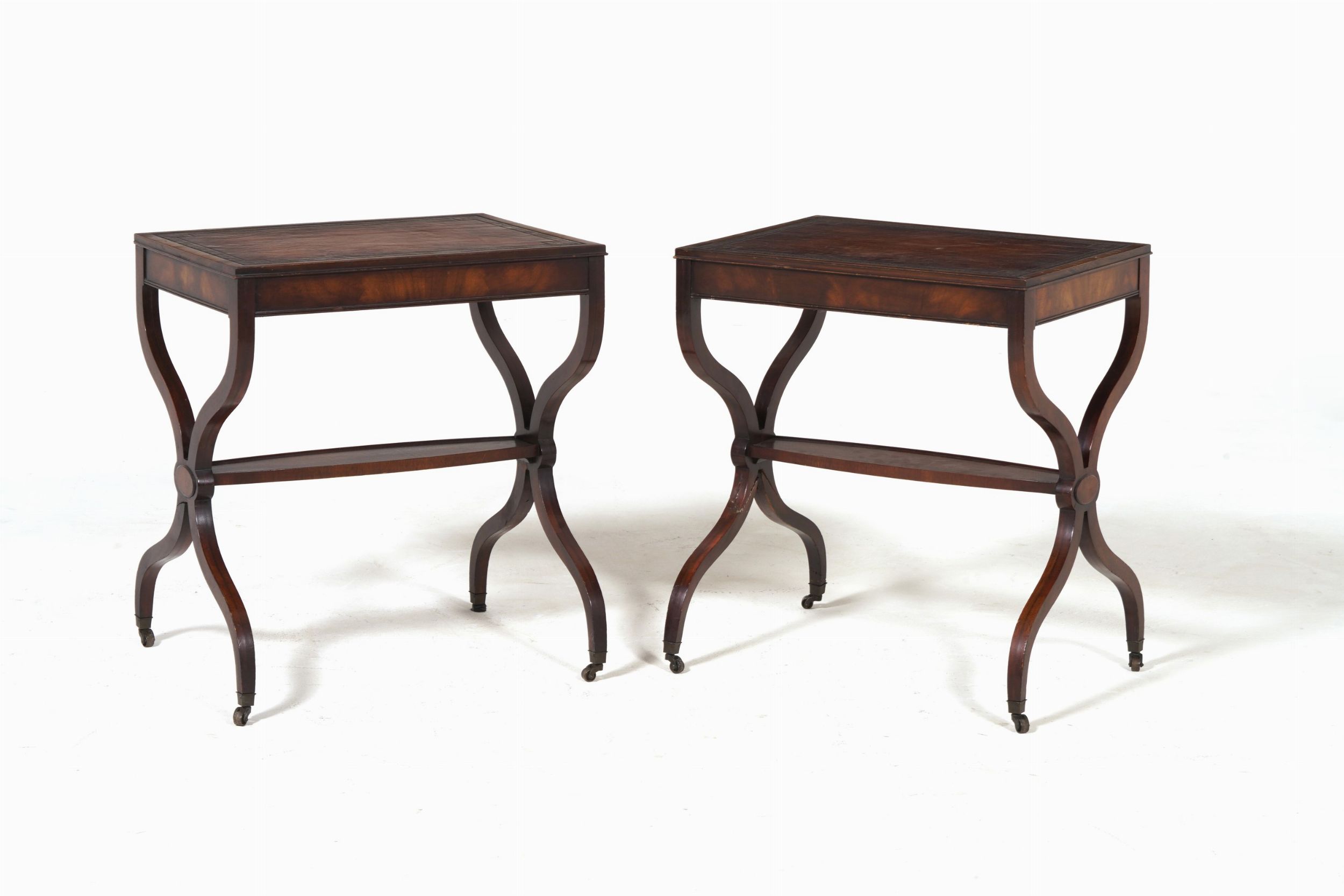 Coppia di scrittoi in mogano con piano in pelle. XIX-XX secolo