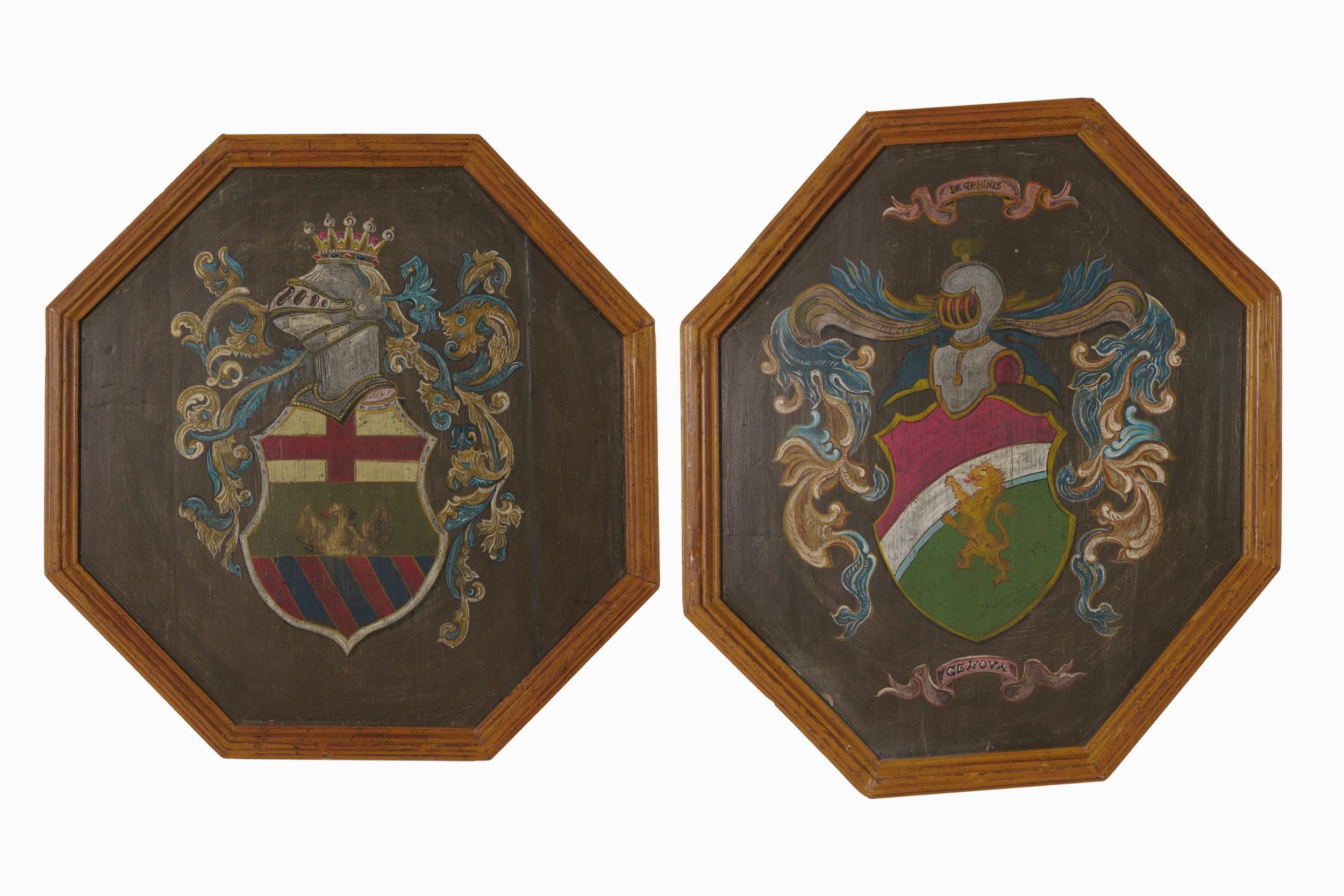 Coppia di stemmi nobiliari olio su tavola, XX secolo