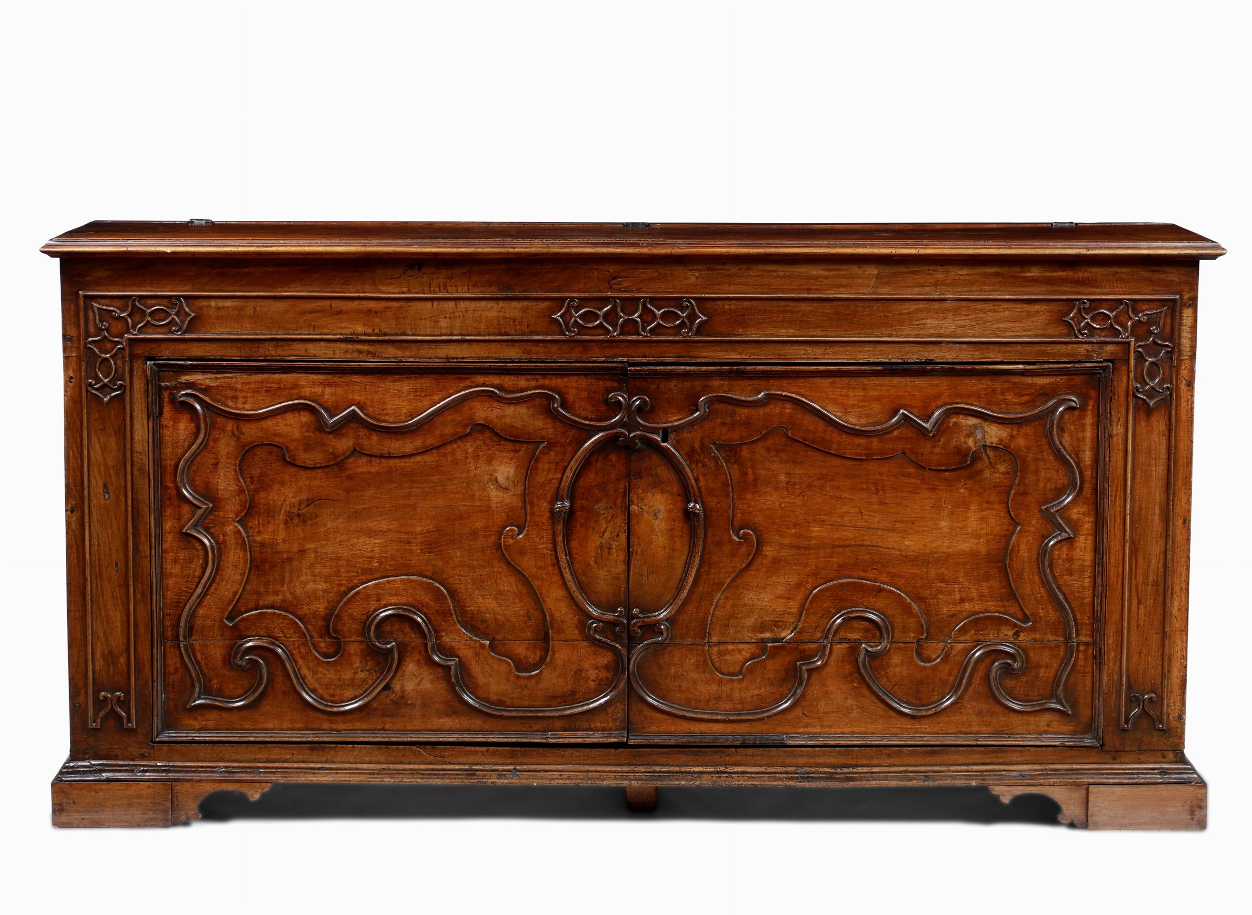 Grande credenza a due ante in legno intagliato. XIX-XX secolo