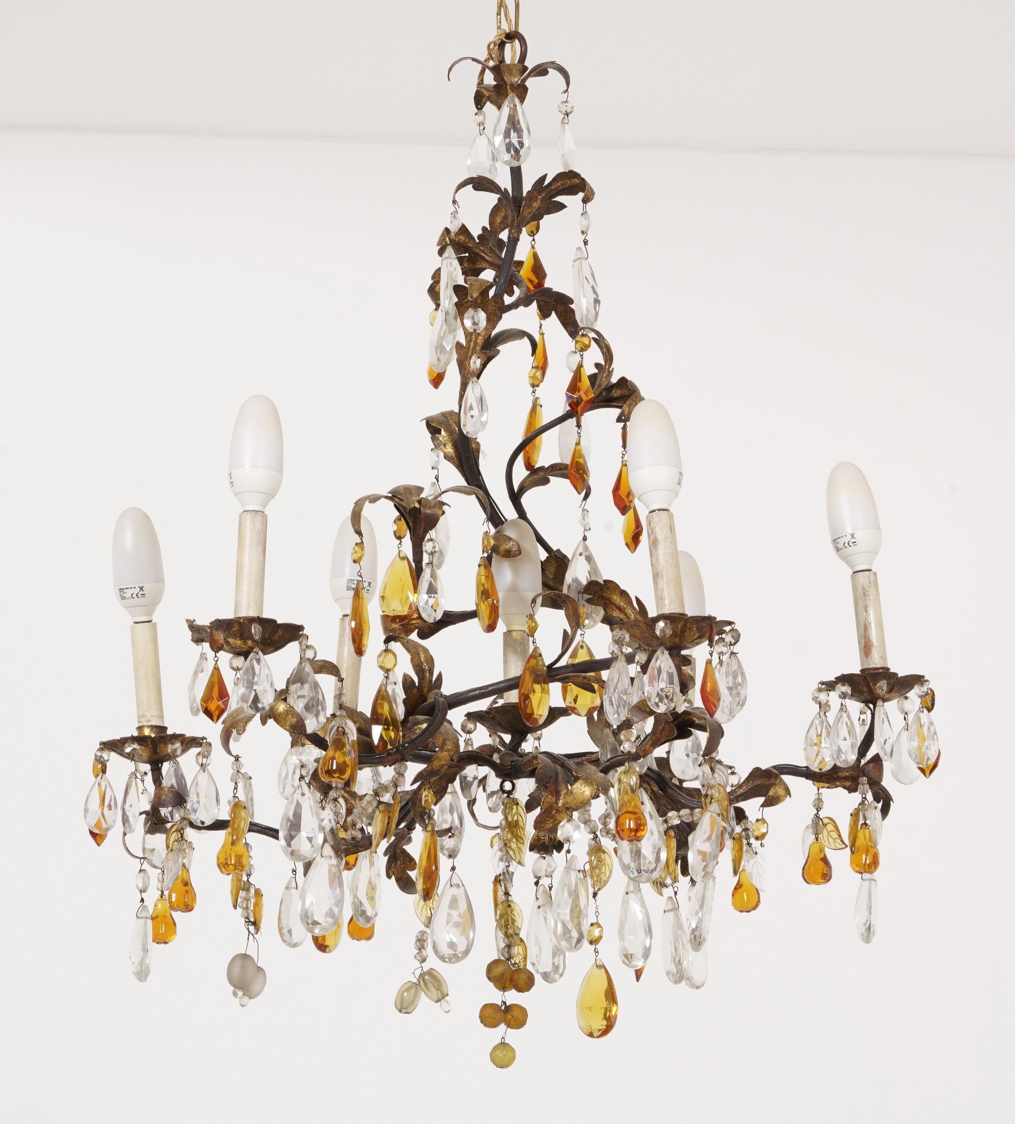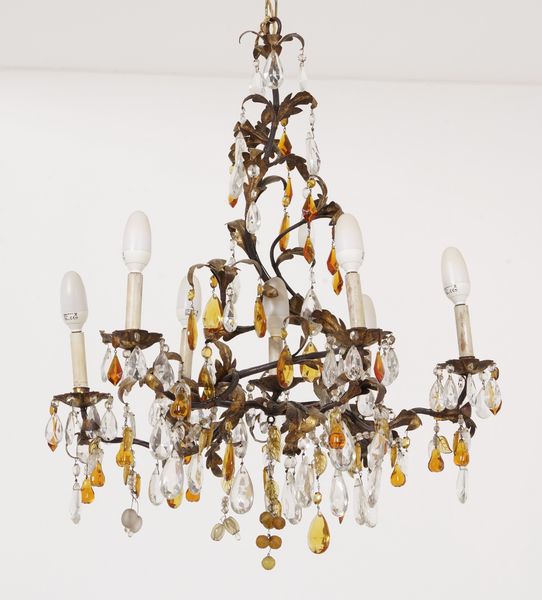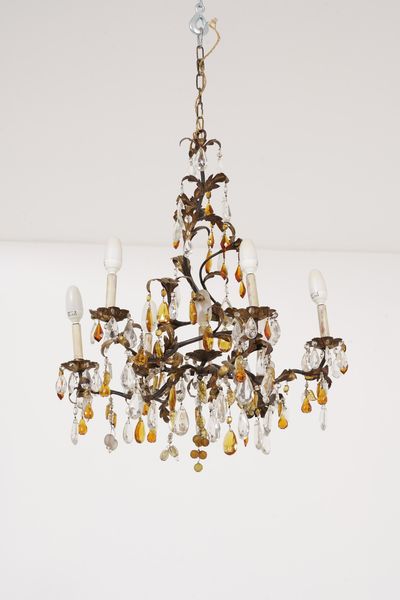 Lampadario a sei luci con pendenti in cristallo molato