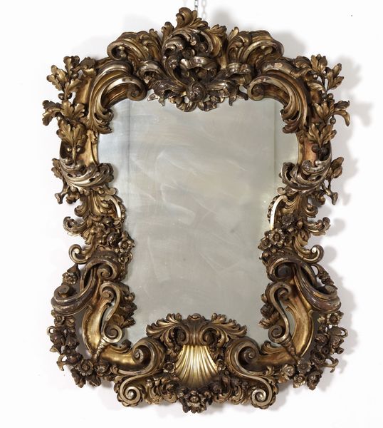 Specchiera in legno dorato e riccamente intagliato. XX secolo
