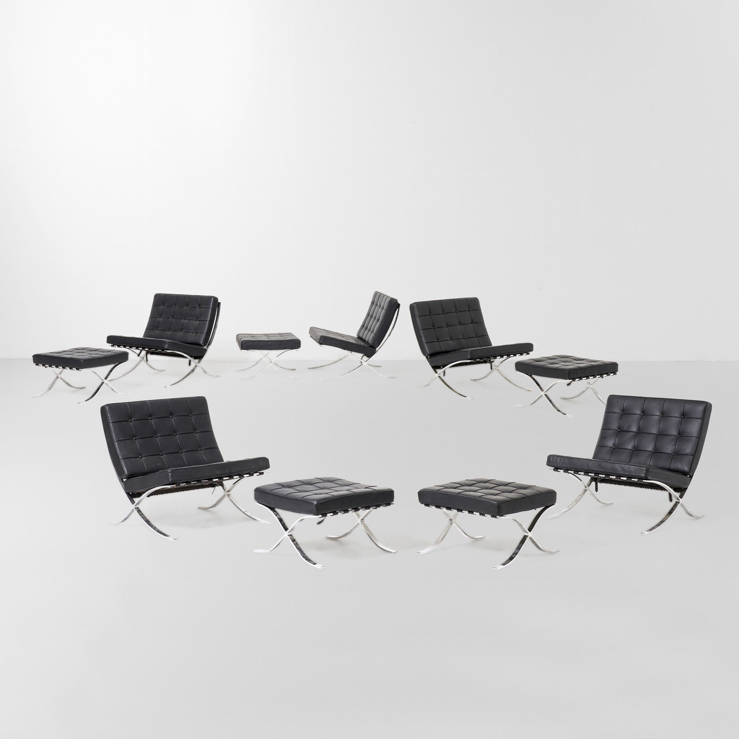 Cinque poltrone MR90 Barcelona con ottomana