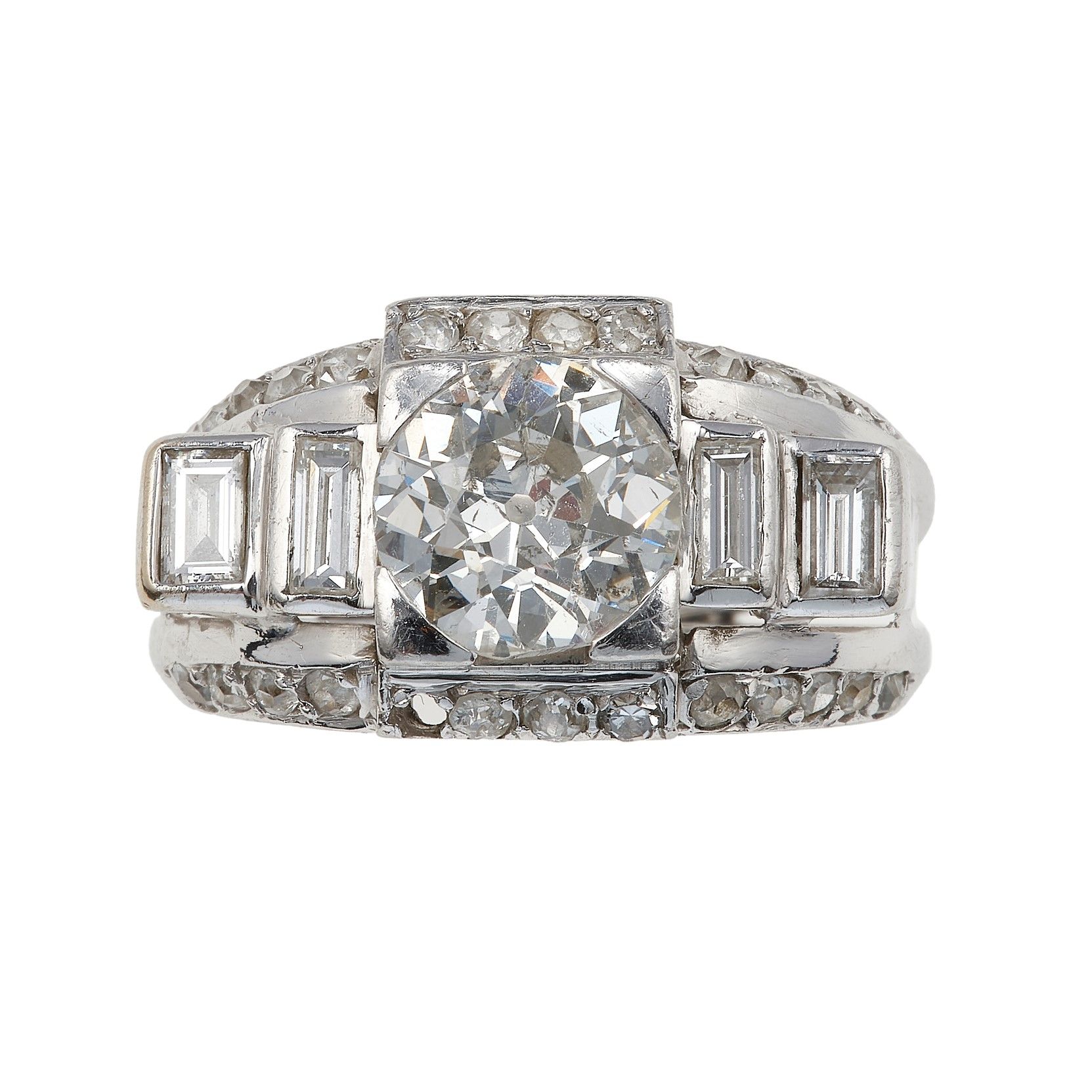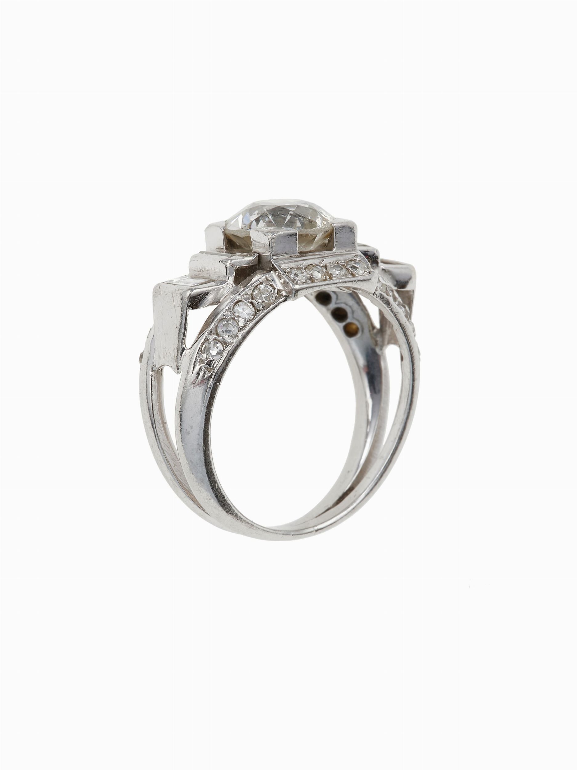 Anello con diamante centrale di vecchio taglio di ct 1.90 circa