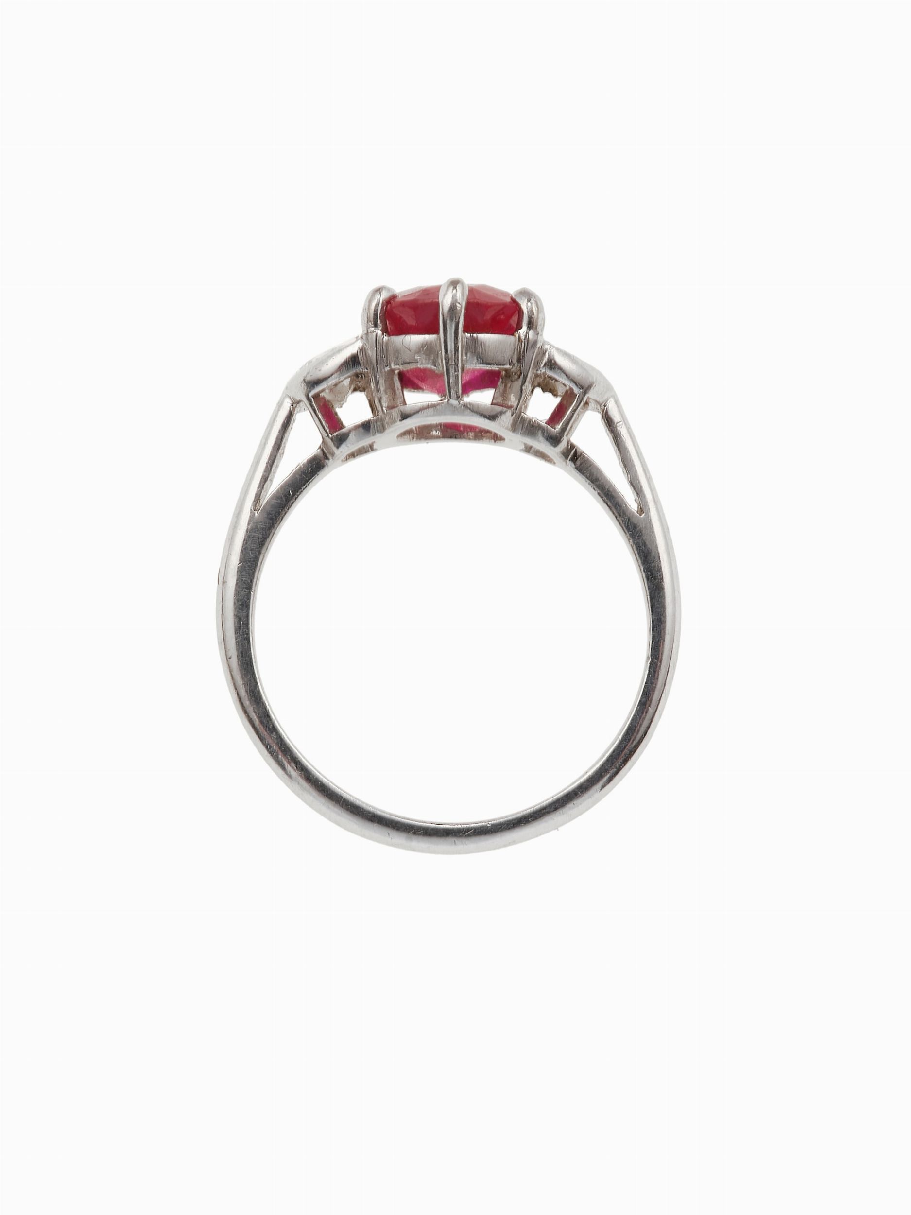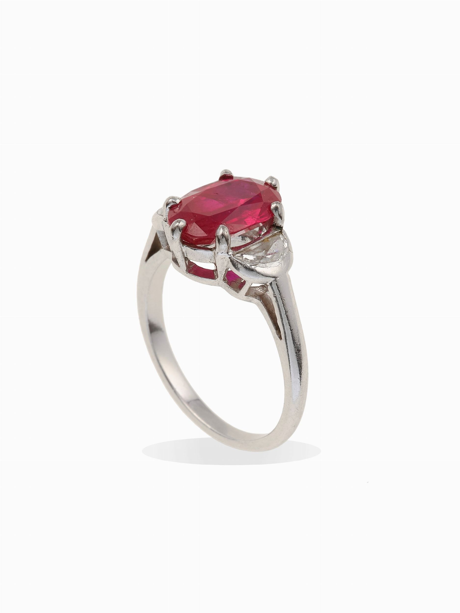 Anello con rubino Burma di ct 1.96 e due diamanti taglio mezzaluna