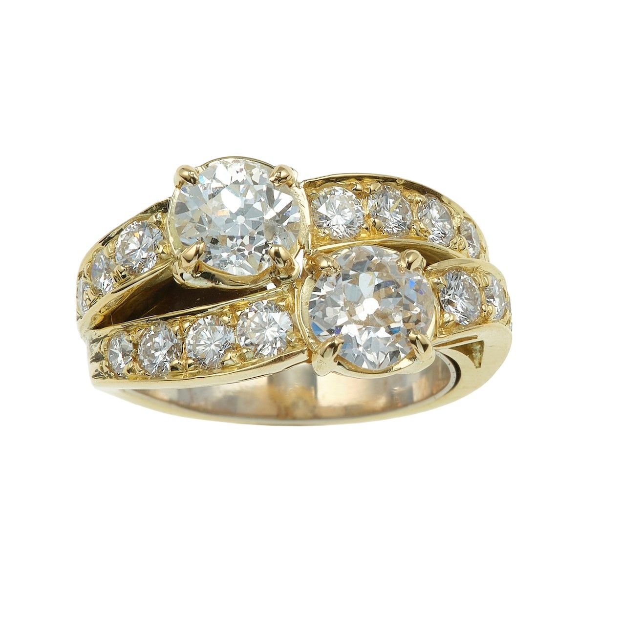 Anello contrarič con due diamanti di vecchio taglio e piccoli diamanti taglio br [..]