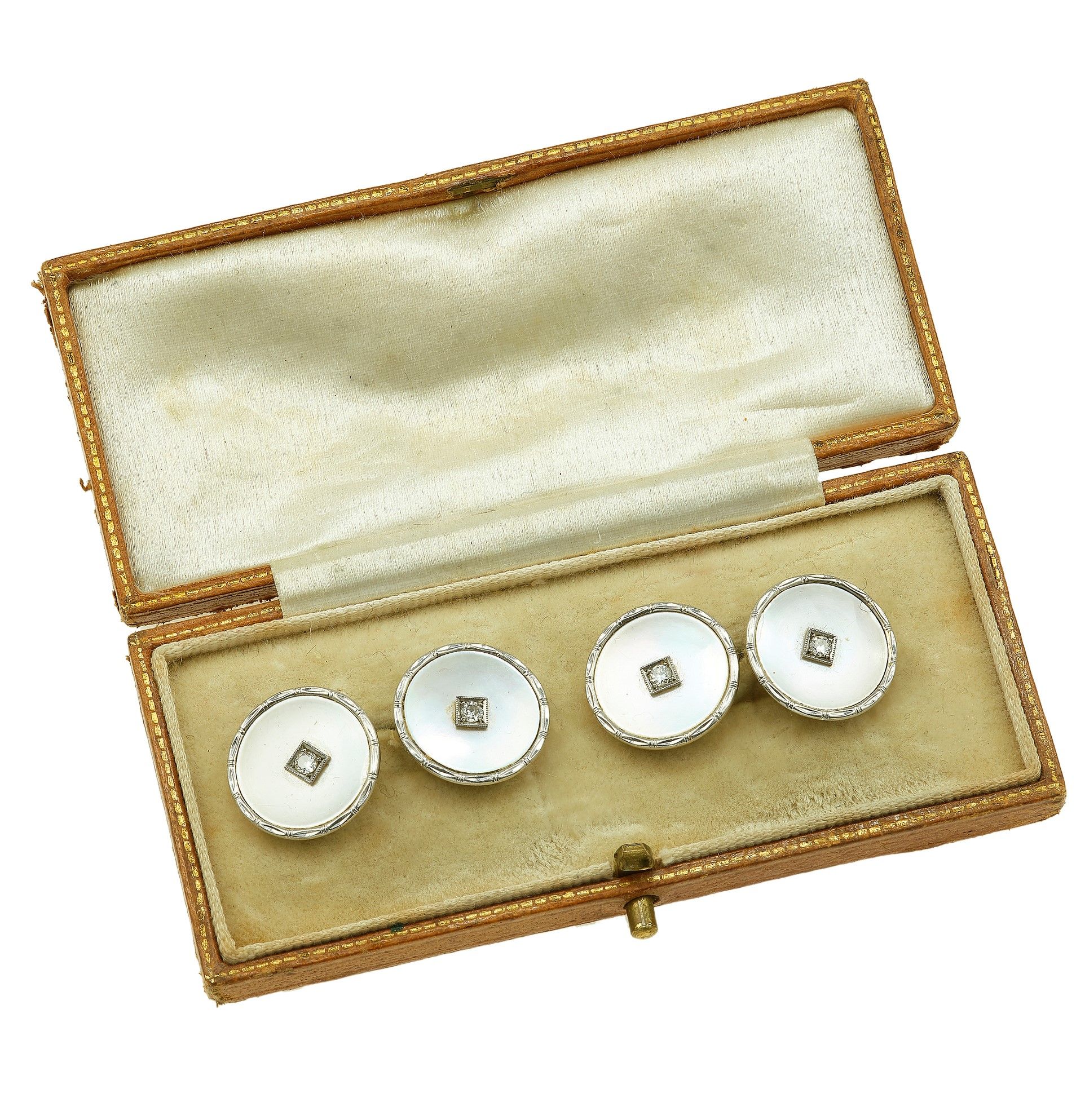 Bottoni da polso con madreperla e piccoli diamanti