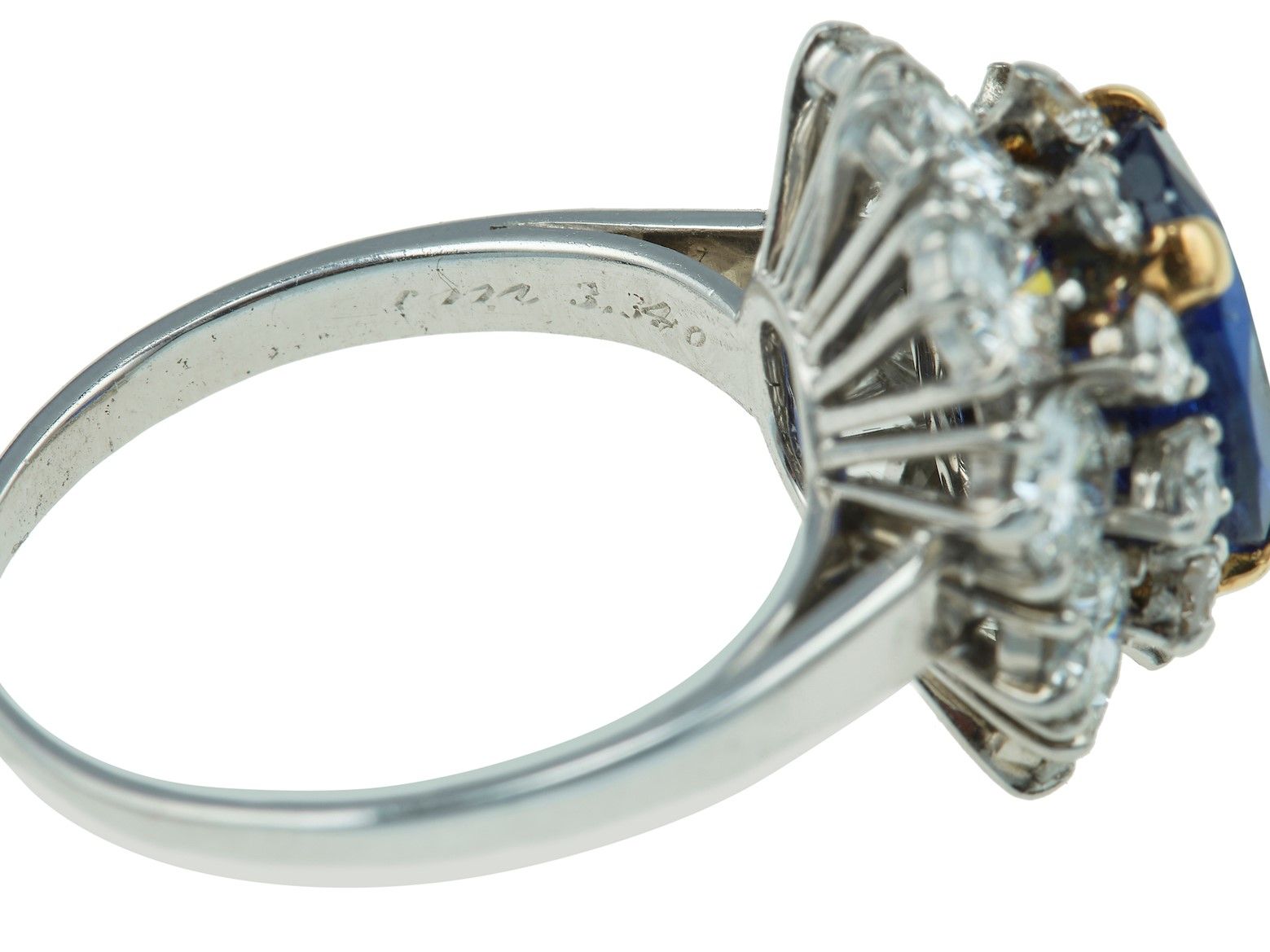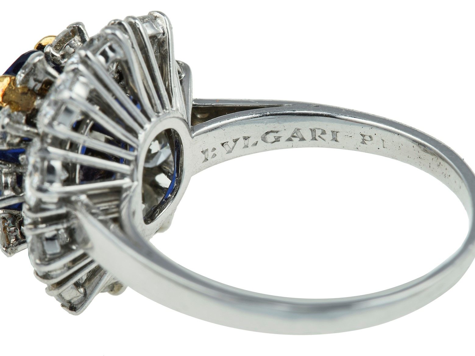 Bulgari. Anello con zaffiro Sri Lanka di ct 3.34, inciso sul gambo e diamanti a [..]