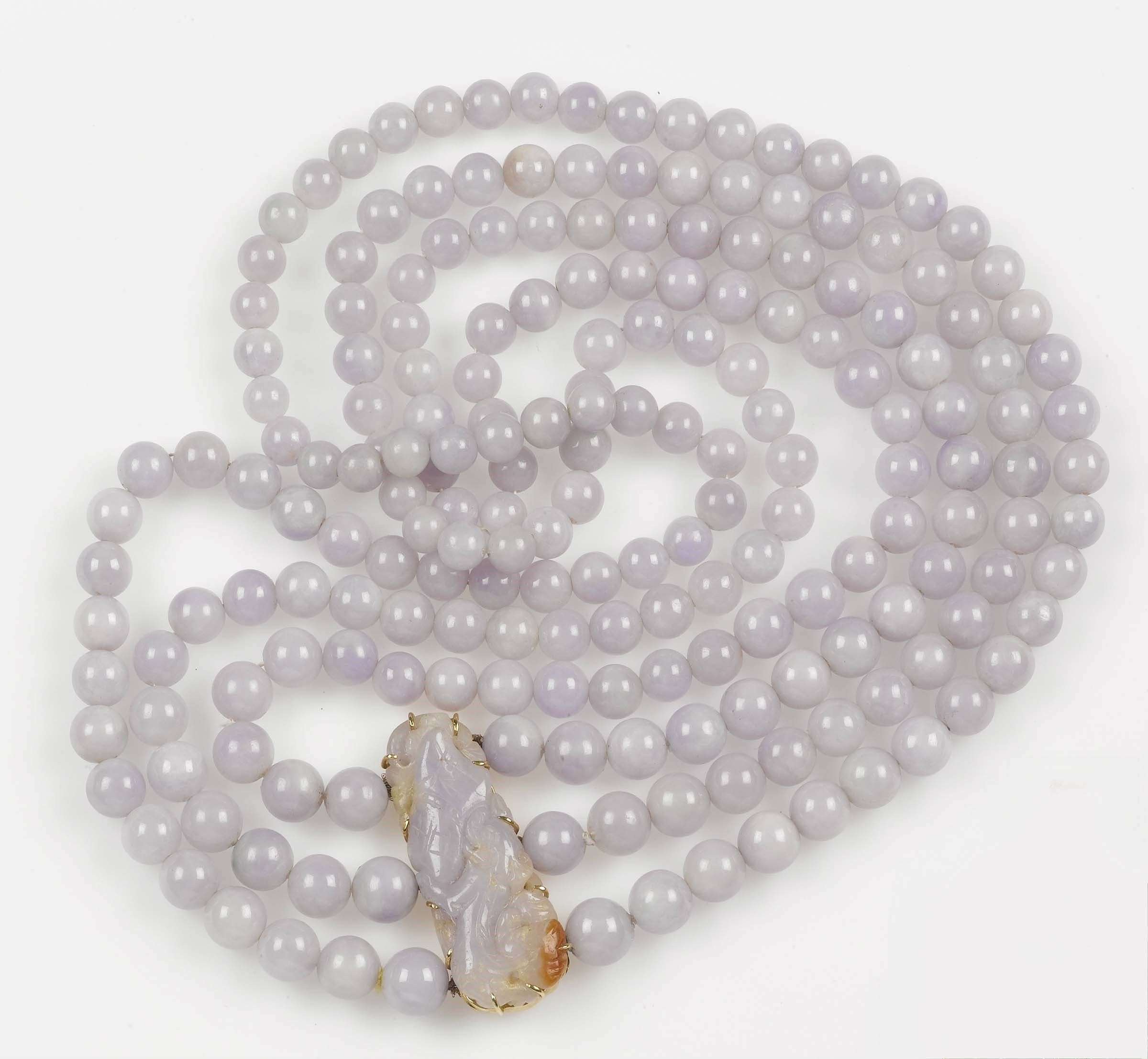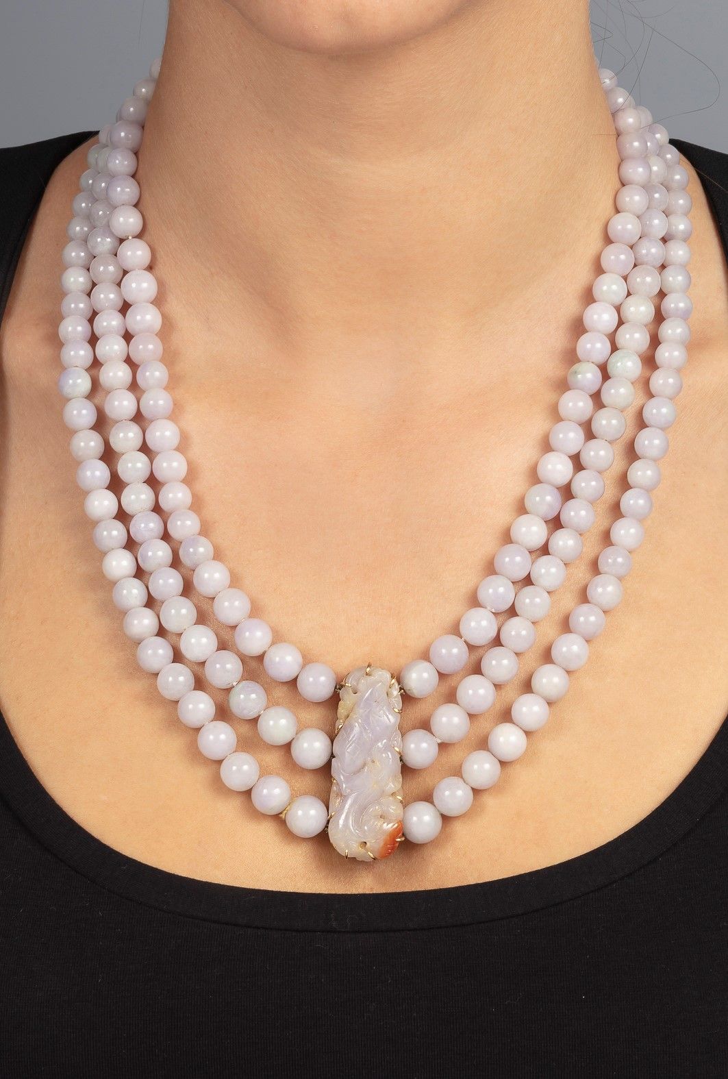 Collana composta da tre fili di giadeite color lavanda con fermezza incisa