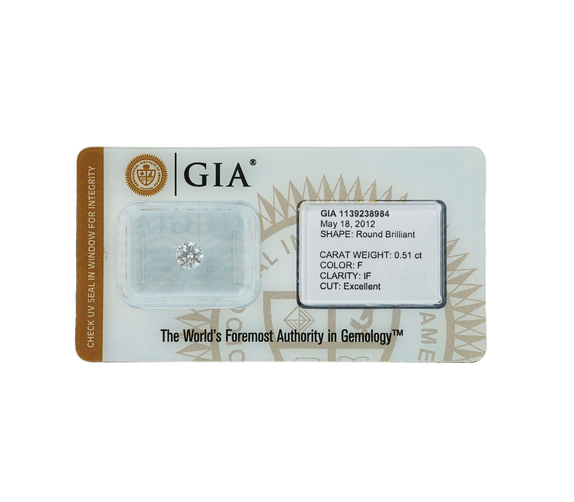 Diamante taglio rotondo a brillante di ct 0.51, colore F, caratteristiche interne [..]