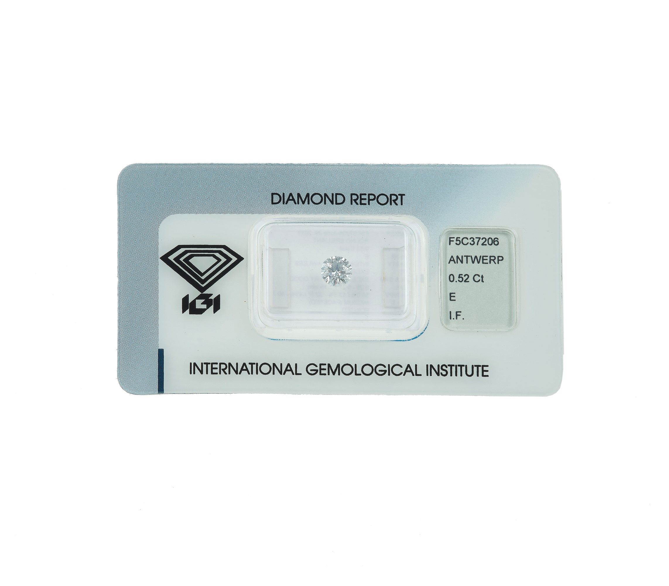 Diamante taglio rotondo a brillante di ct 0.52, colore E, caratteristiche interne [..]