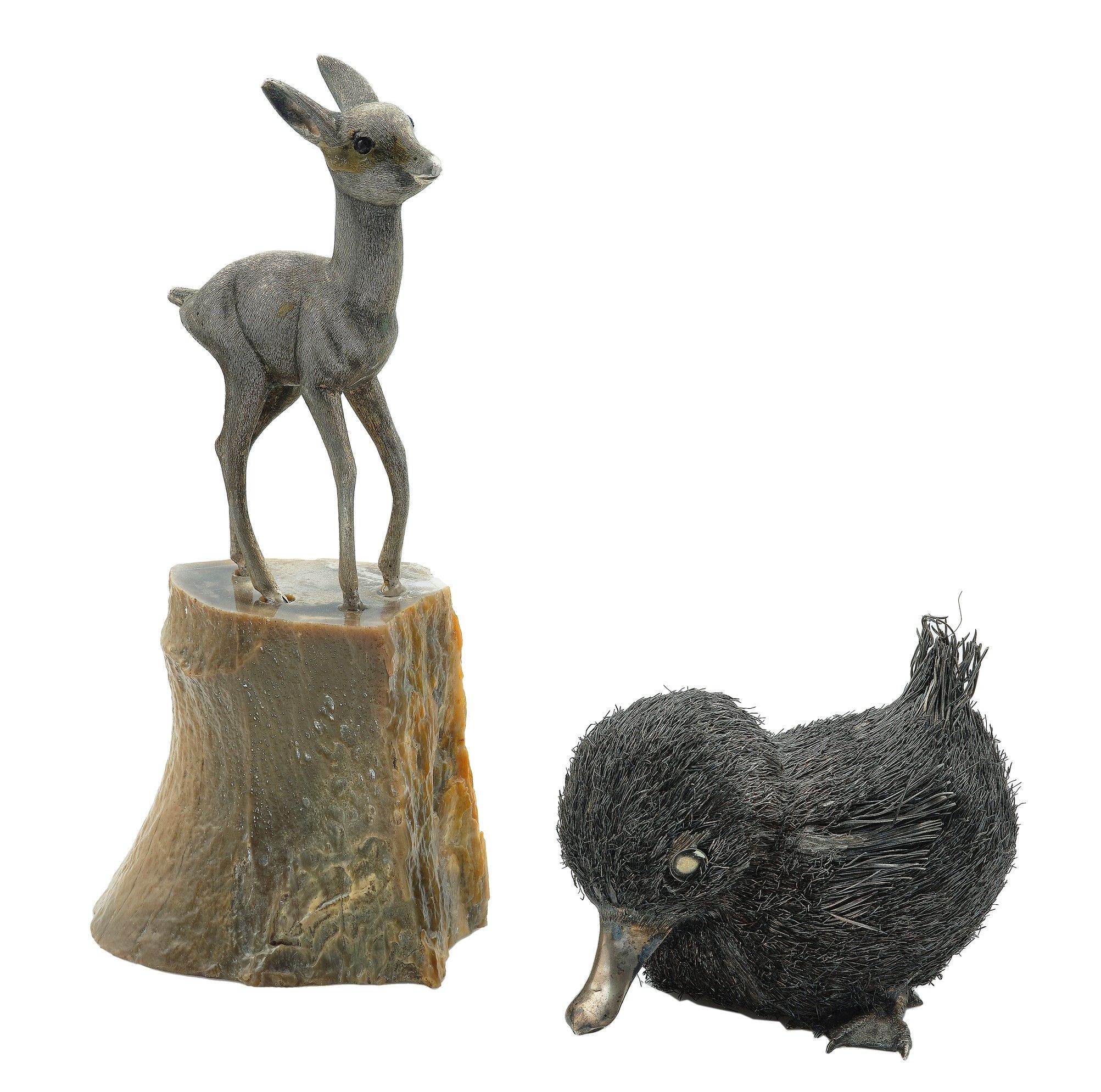 Lotto composto da un cerbiatto su pietra dura firmato M. Buccellati ed un anatroccolo [..]