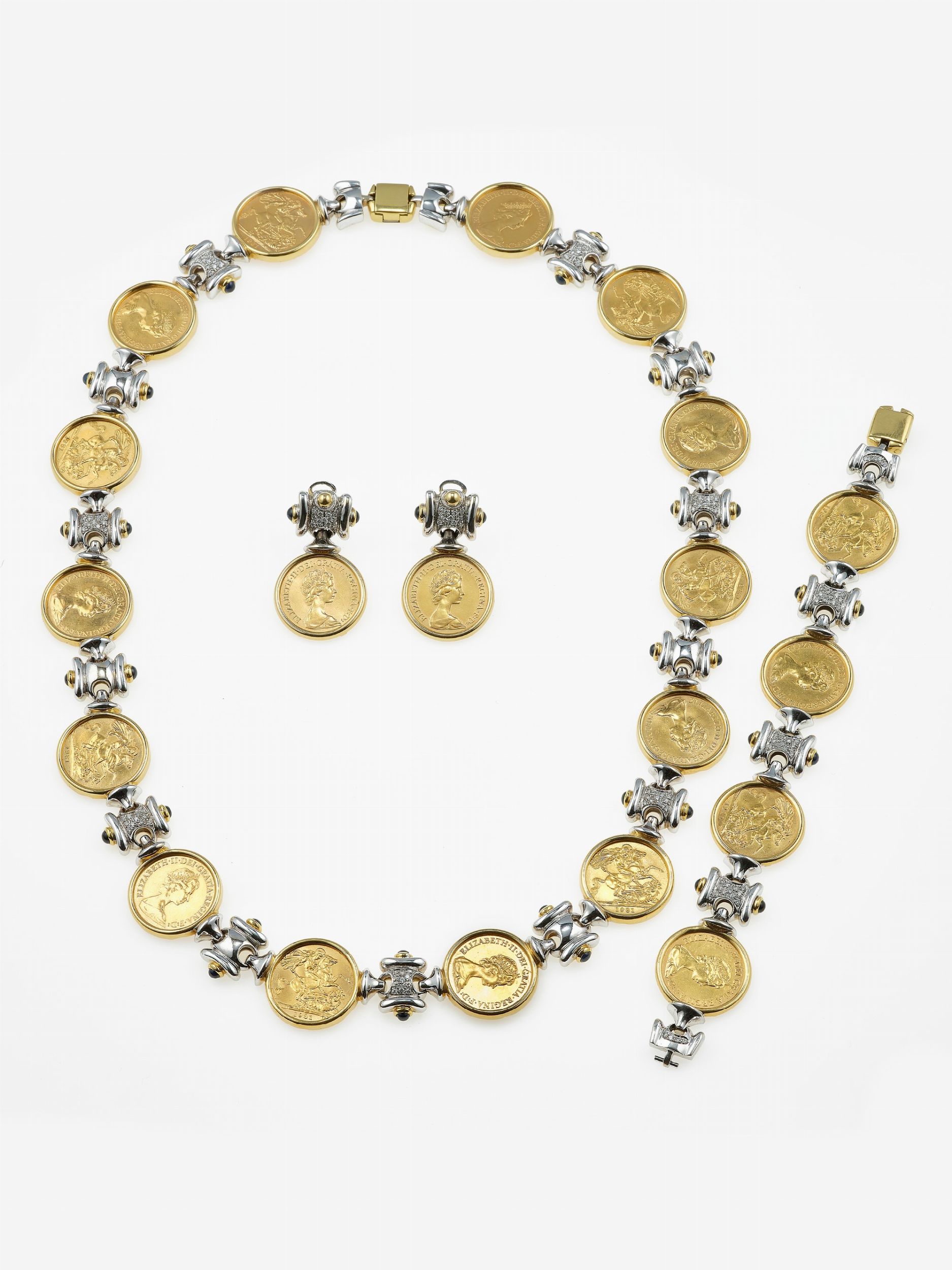 Parure composta da girocollo, bracciale ed orecchini con sterline, diamanti e za [..]