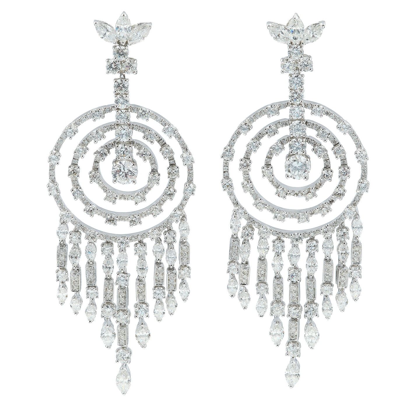 Pederzani. Orecchini a cascata, cerchi concentrici, con diamanti taglio brillante [..]