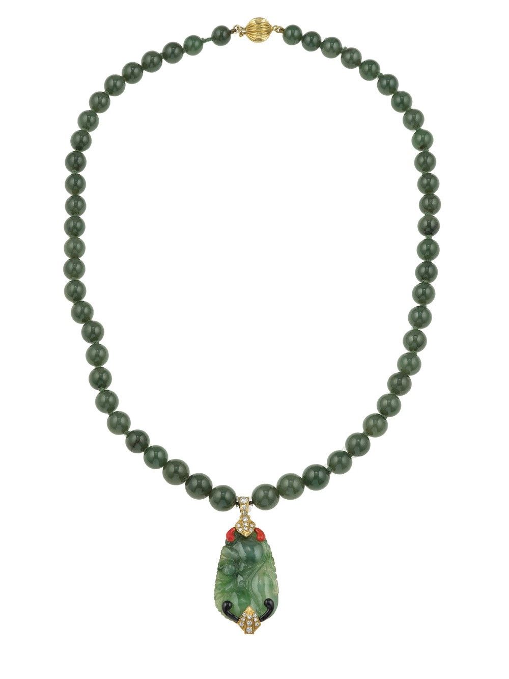 S.Nardi. Pendente in giadeite con inserti in smalti policromi e diamanti