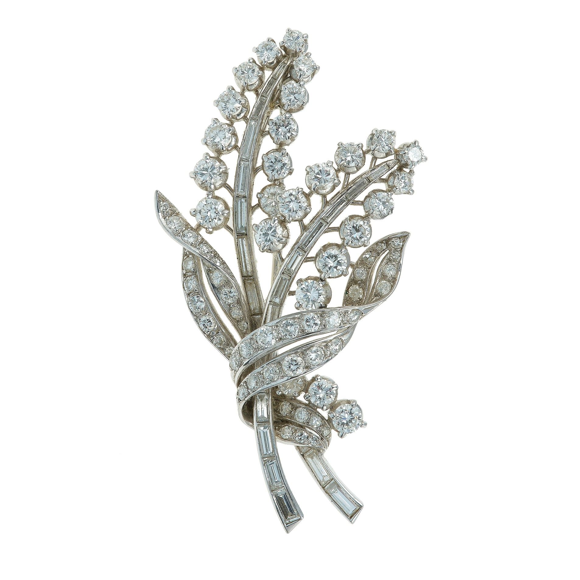 Spilla con diamanti taglio rotondo e baguette
