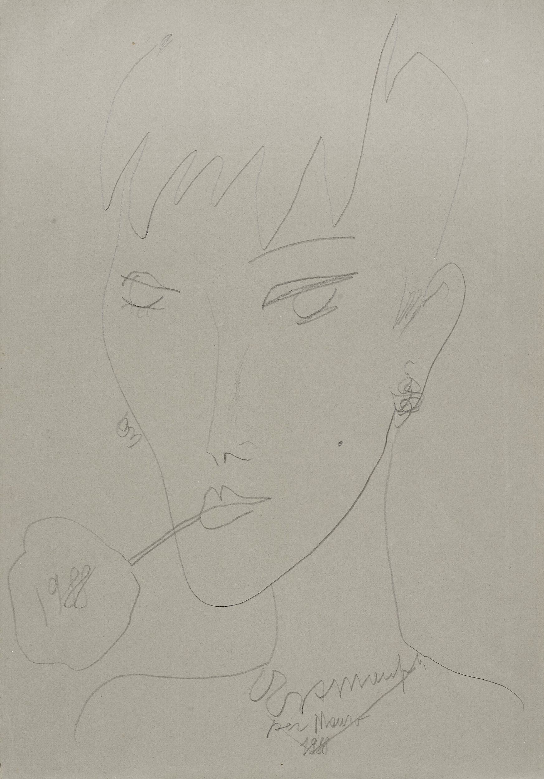 1988 Firma, dedica e data in basso al centro: Manfredi / per Mauro / 1988.