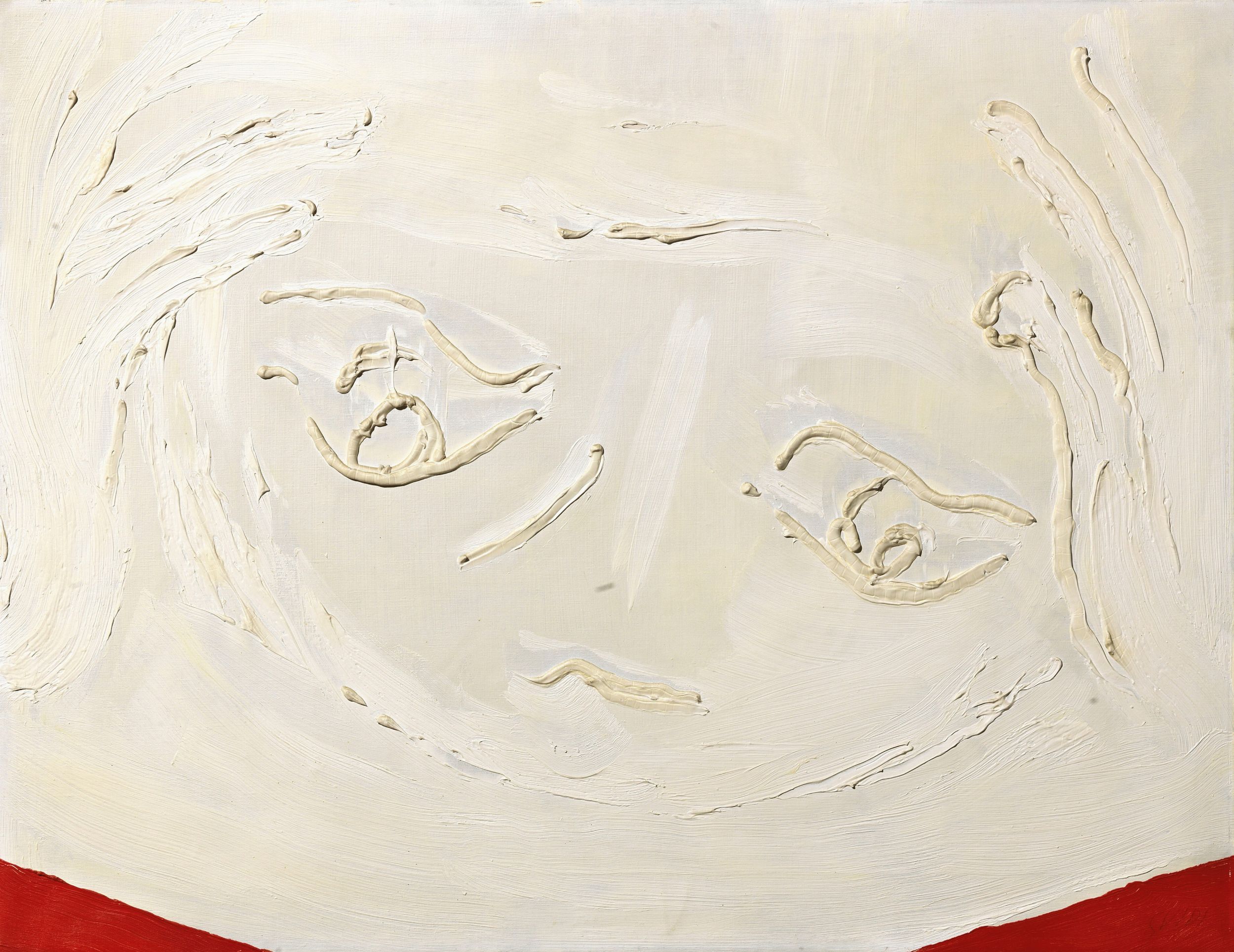 Olio su tela, cm. 70x90 1977 Firma in basso a destra: Guidi; scritta, data e dedica al verso sulla tela: Testa tragica / Opere bianche / 1977 / Guidi / per la Baronessa Miretty Graff / il 25.10.1978 / Guidi.