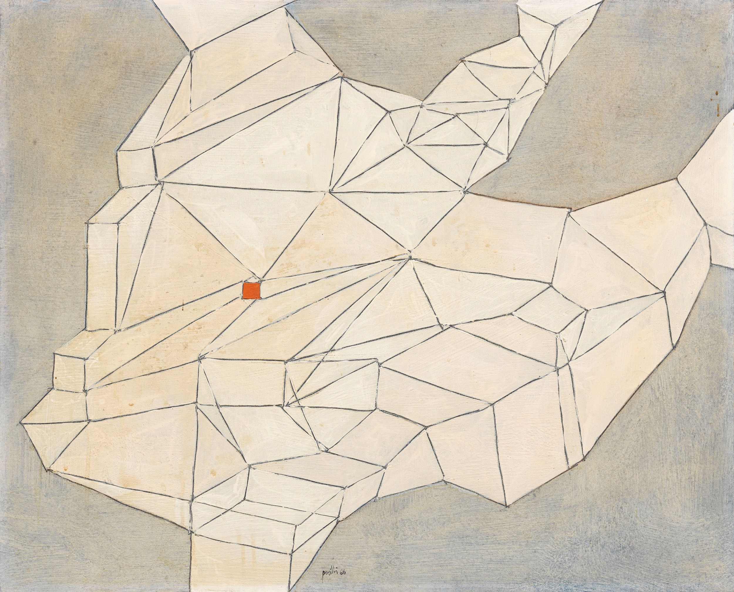 1968 Firma e data in basso al centro: Perilli / 68; firma, data e titolo al verso sulla tela: Achille Perilli 1968 / Il cuore del mondo;