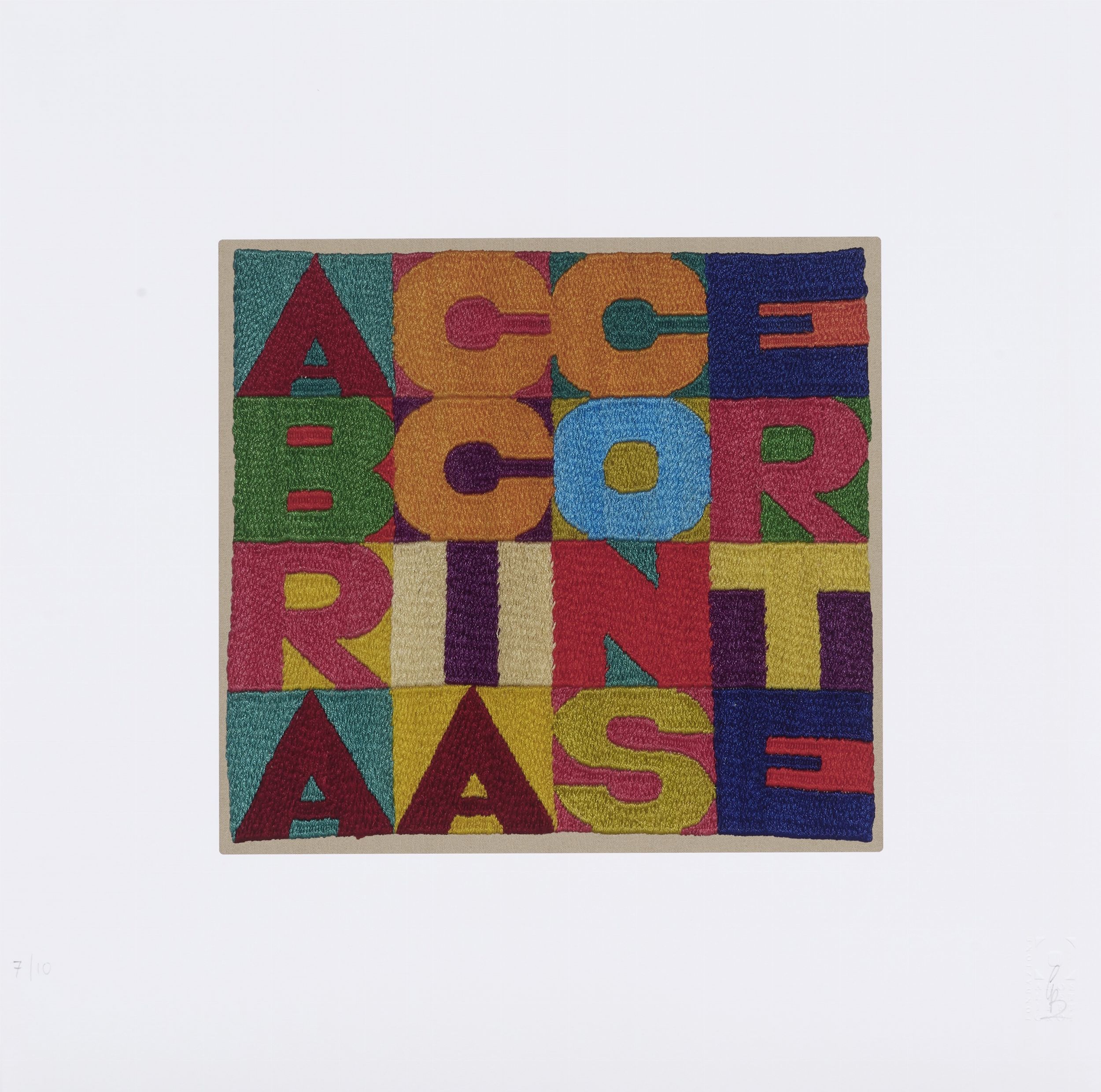 2023 Timbro a secco Fondazione Alighiero Boetti in basso a destra con firma a matita di Giordano Boetti, tiratura in basso a sinistra: 7/10.
