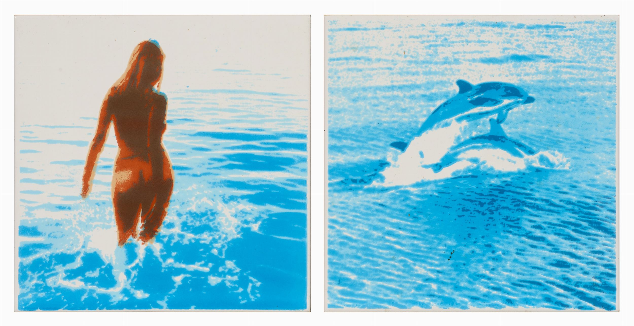 Piastrelle in ceramica policroma, cm. 21,5x21,5 ognuna