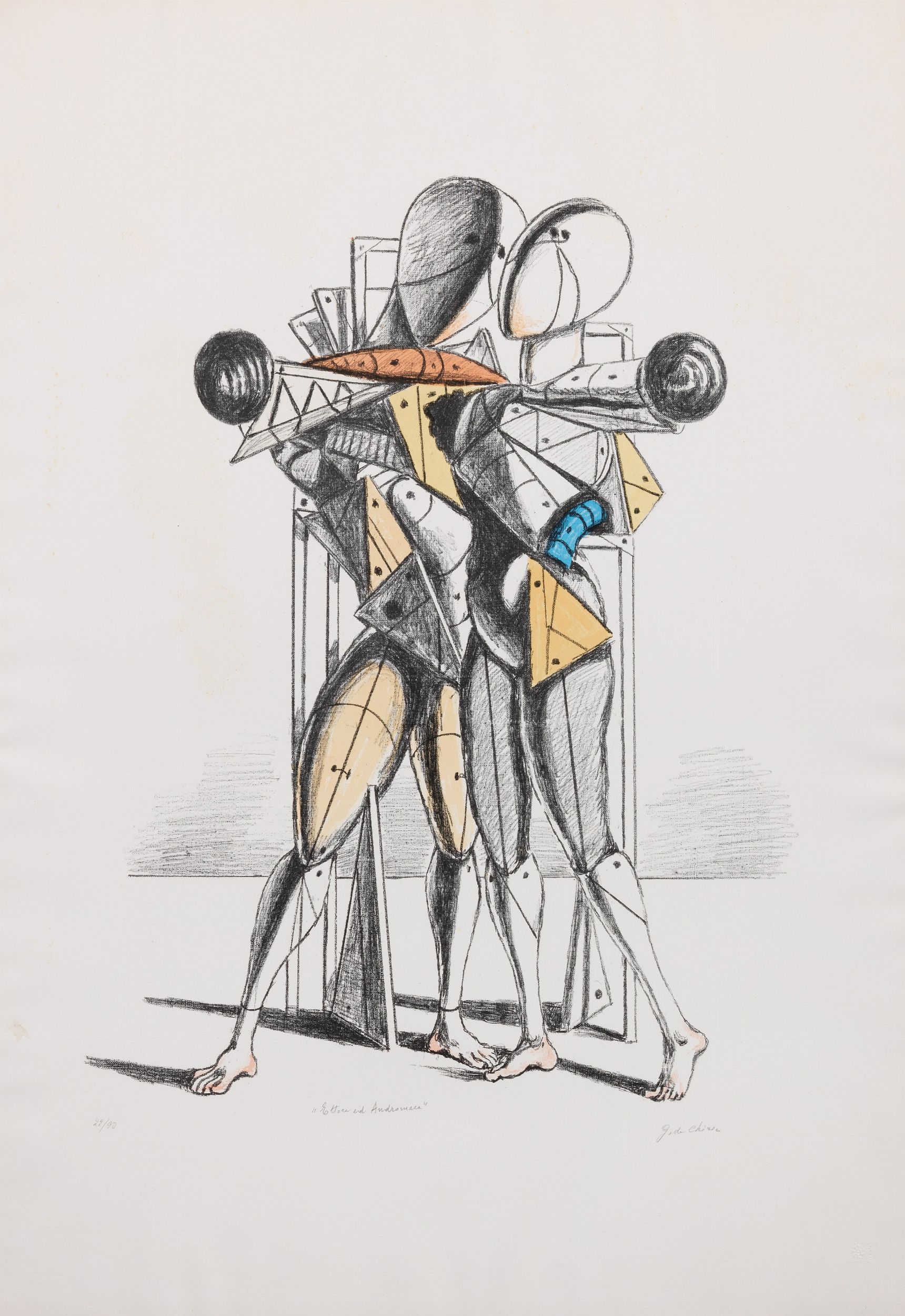 1970 Firma a matita sul margine in basso a destra: G. de Chirico, timbro a secco Alberto Caprini Stampatore / in Roma, titolo in basso al centro: Ettore e Andromaca, tiratura in basso a sinistra: 22/90: timbro a secco GdeChirico.