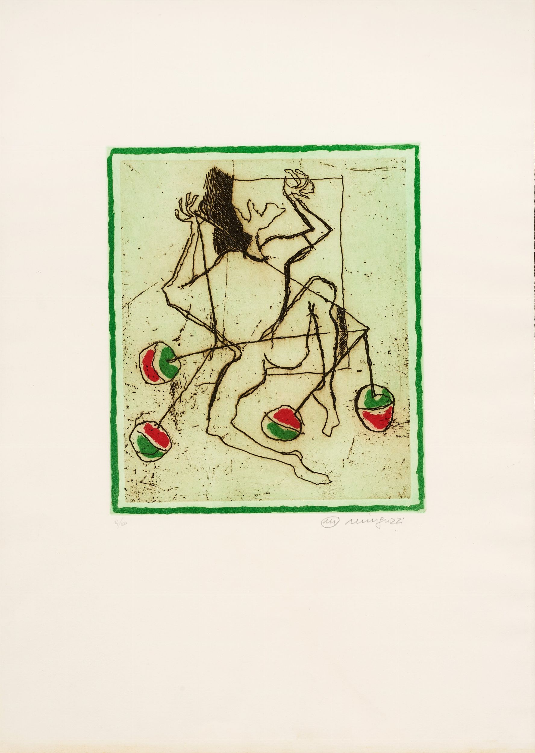 Sigla e firma a matita sul margine in basso a destra: M Minguzzi, tiratura in basso a sinistra: 14/100.