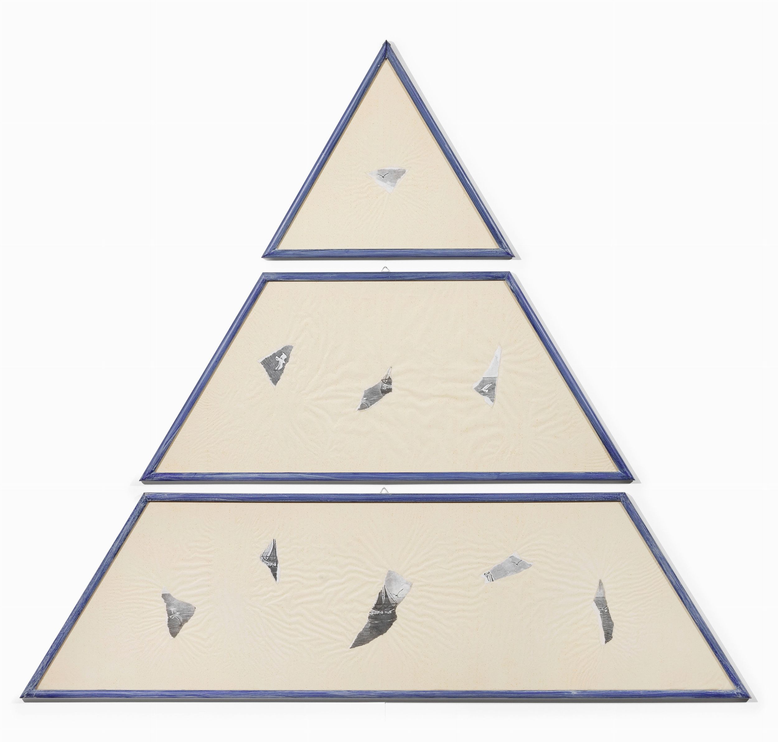Collage su carta, trittico, cm. 82x94,5 (assieme, con cornice)