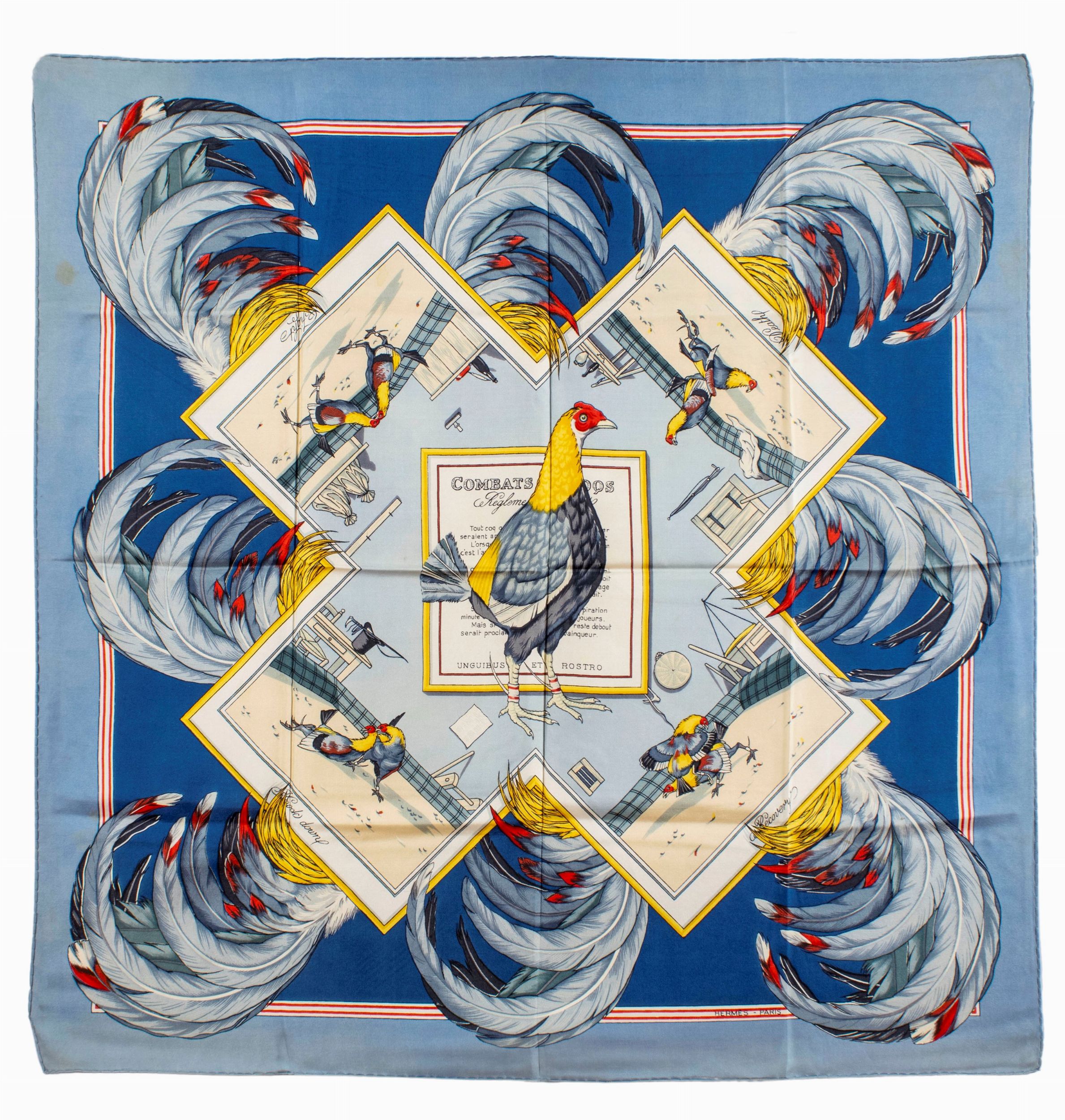 in seta nei toni del celeste, blu, giallo oro e rosso, segni di usura