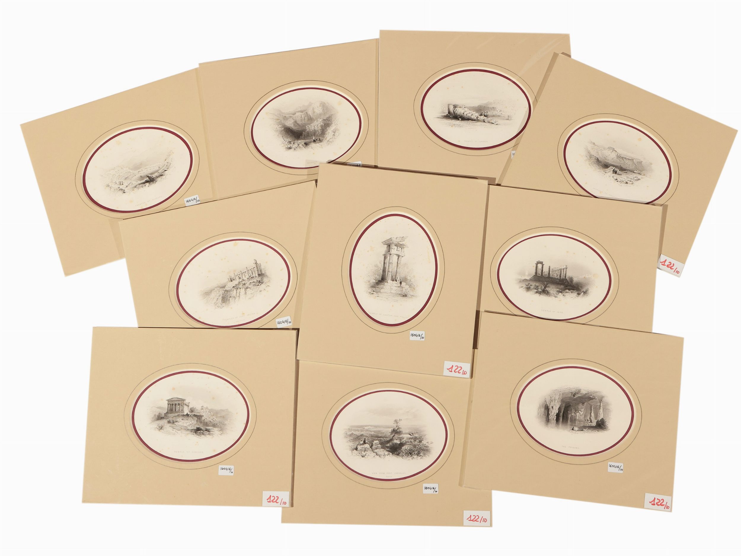 XIX secolo 10 incisioni su acciaio, con passe-partout, tracce di foxing