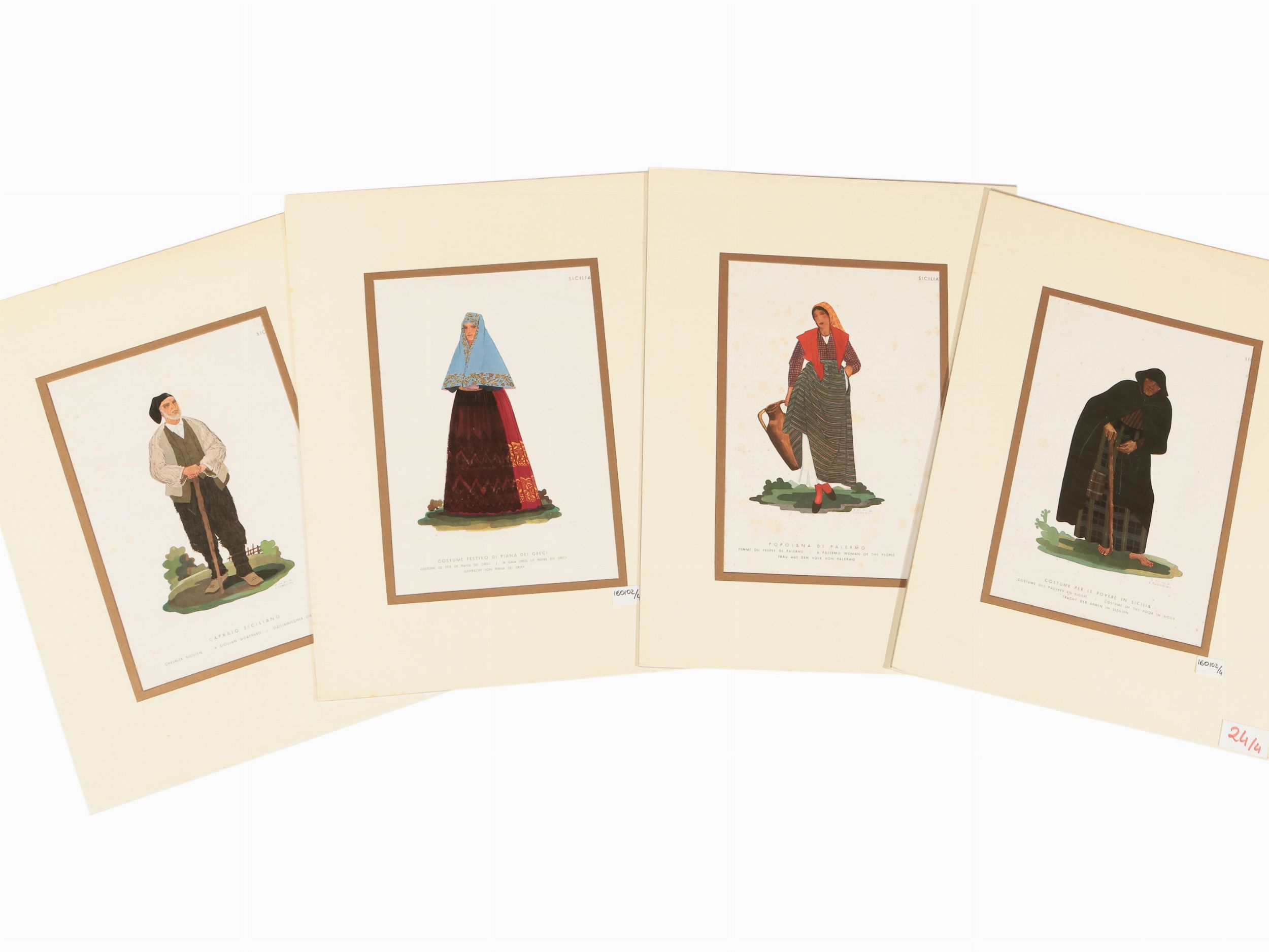 Inizio del XX secolo quattro cromolitografie, con passe-partout, tracce di foxing