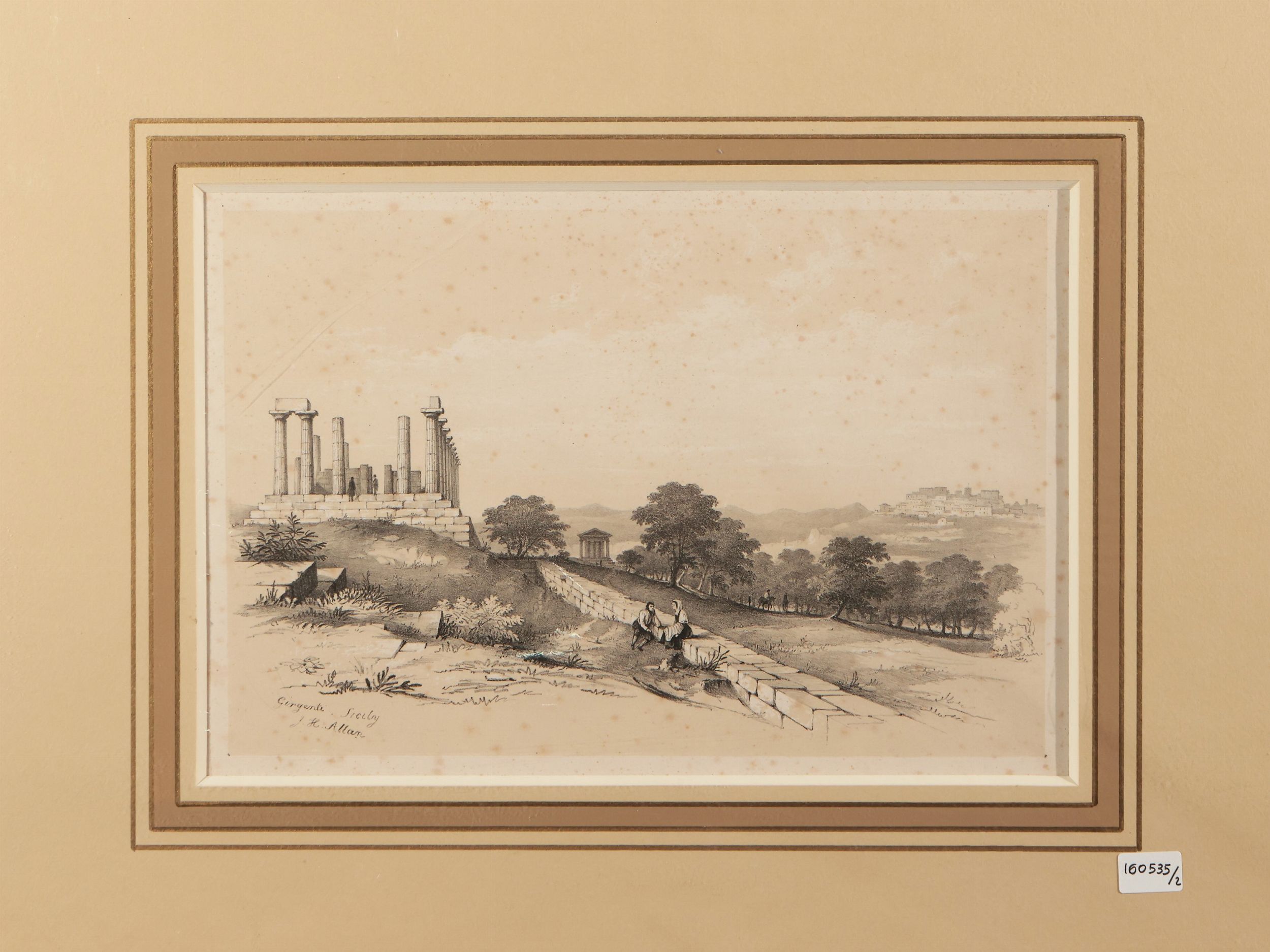 XIX secolo due litografie, con passe-partout, tracce di foxing