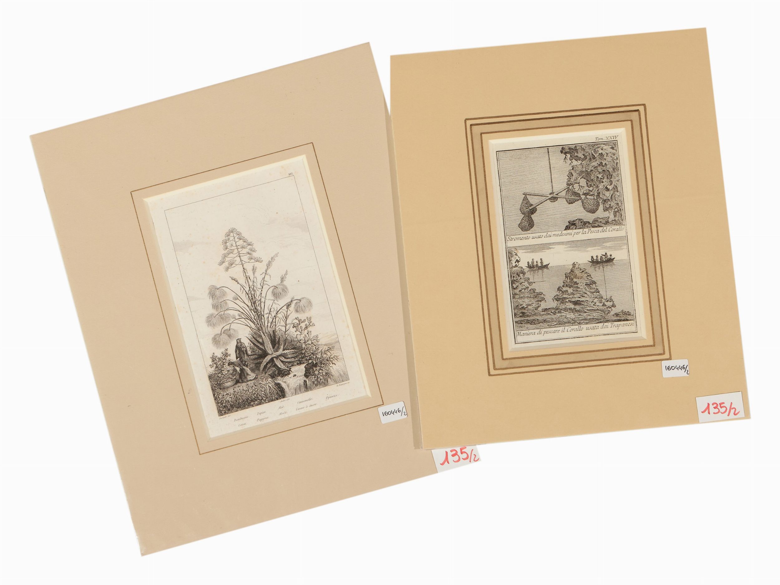 XVIII e XIX secolo un'acquaforte su rame e una incisione su acciaio, entrambe con passe-partout, lievi difetti