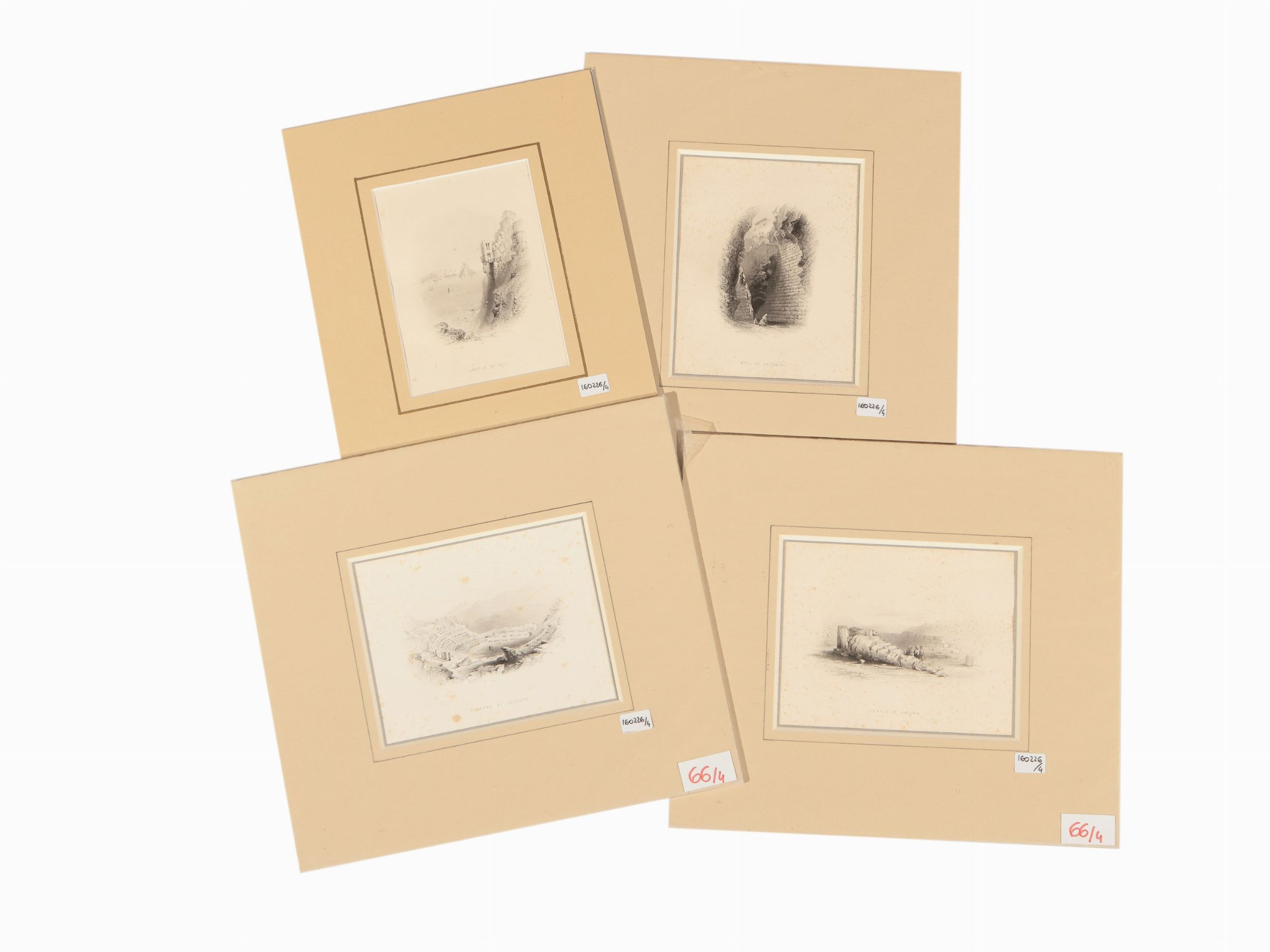 XIX secolo quattro incisioni su acciaio, con passe-partout, tracce di foxing