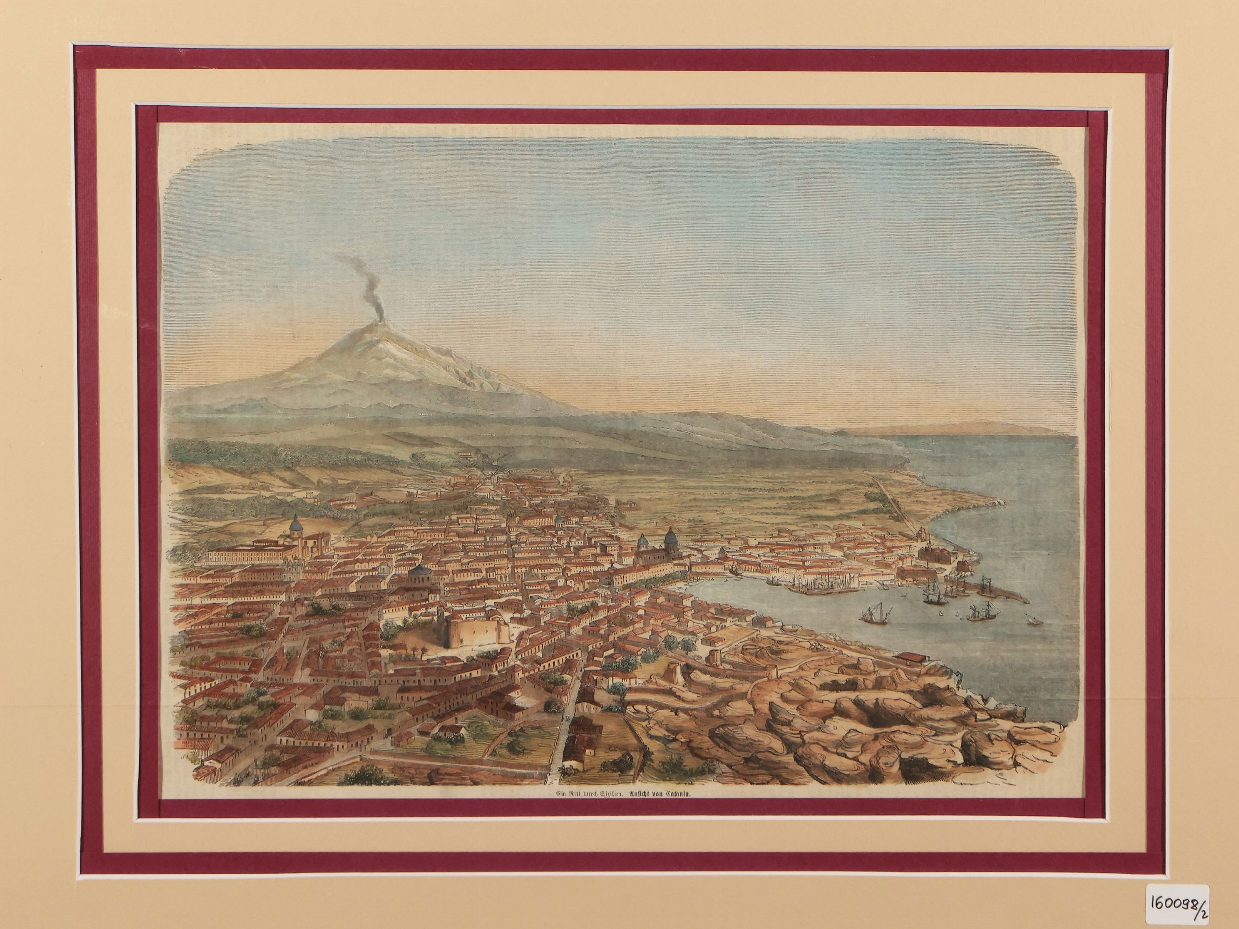Metà del XIX secolo due xilografie, acquerellate, con passe-partout
