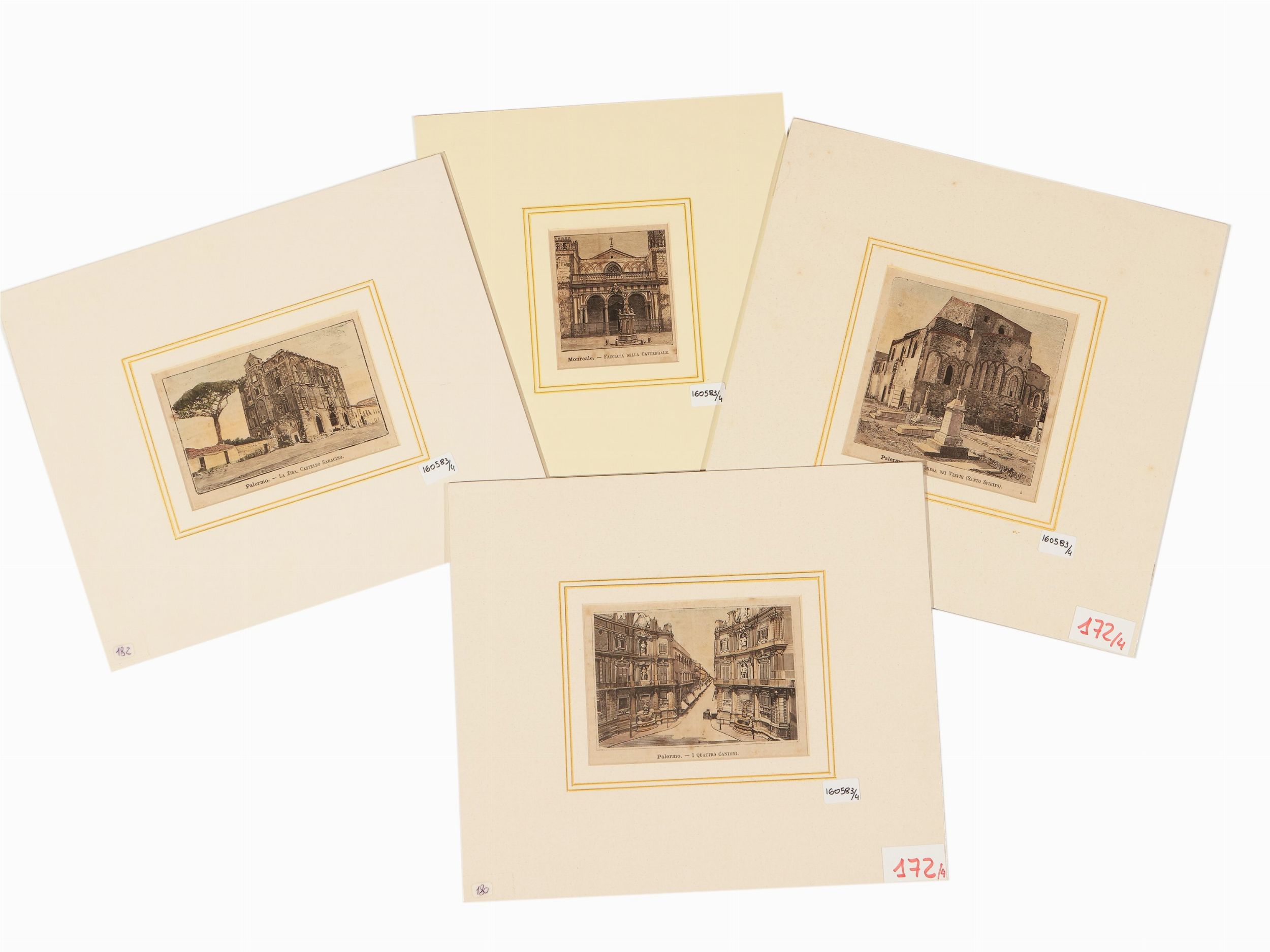Fine del XIX secolo quattro xilografie, con passe-partout, tracce di foxing
