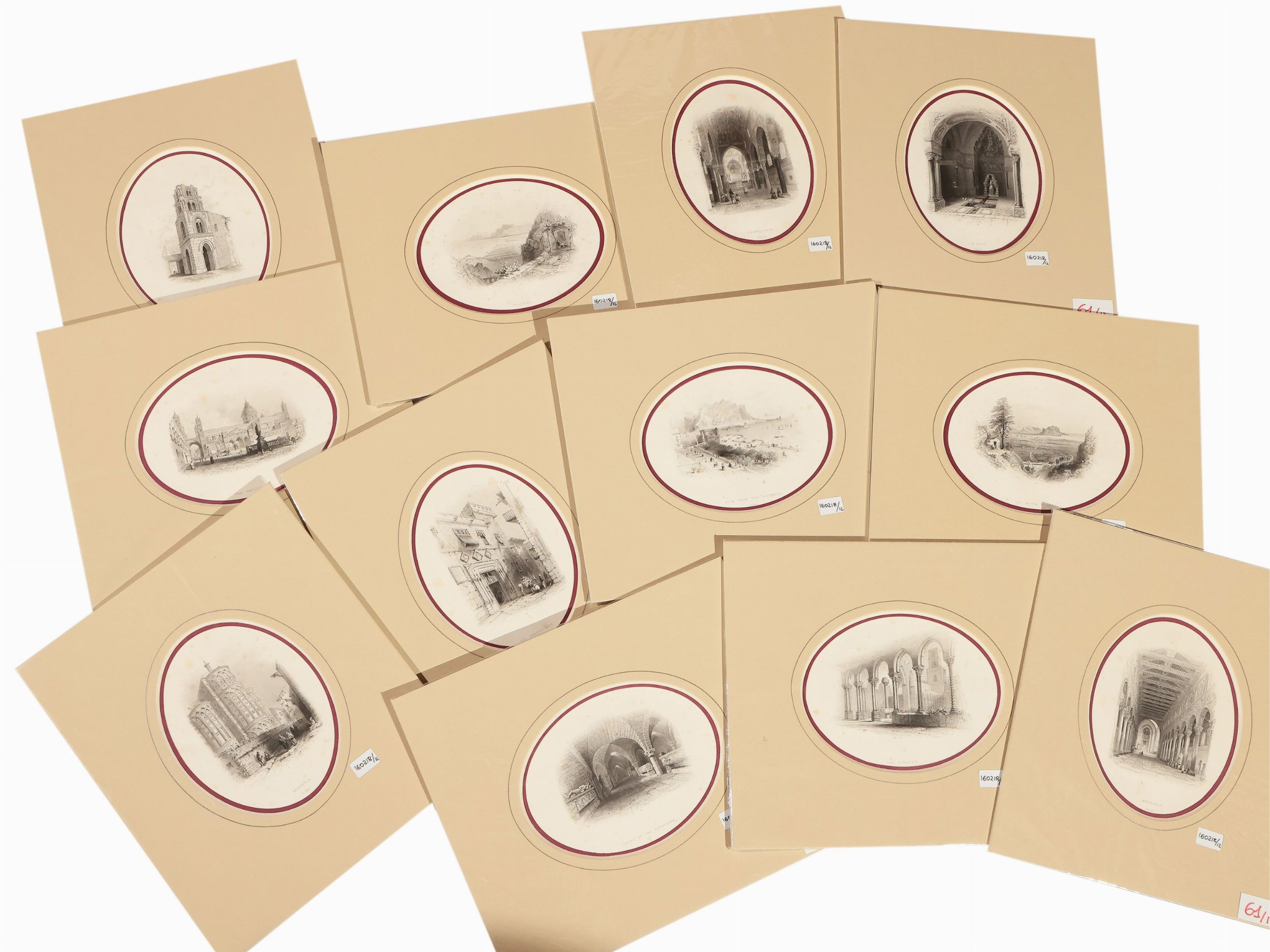 XIX secolo 12 incisioni su acciaio, con passe-partout, lievi tracce di foxing
