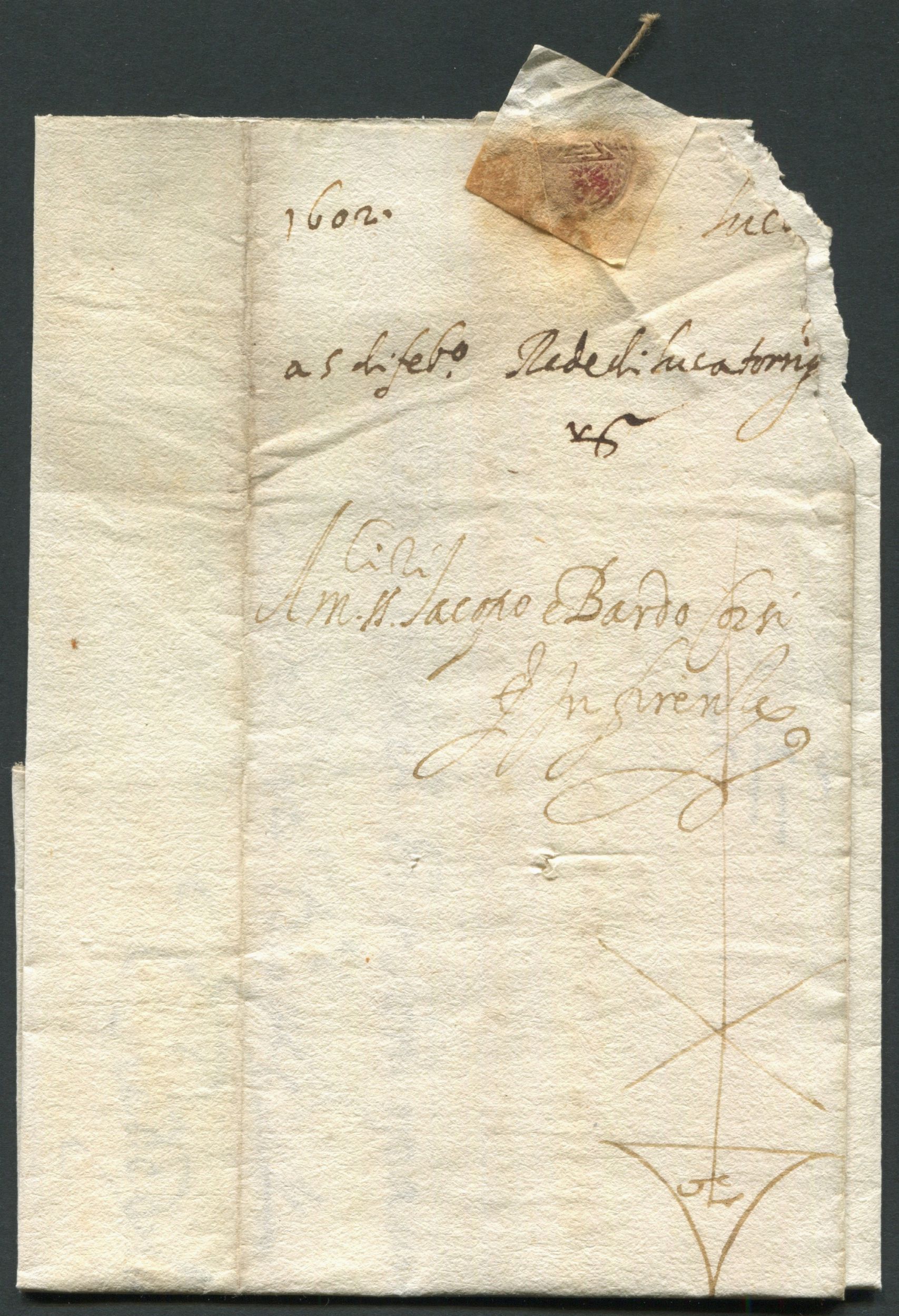 1602, Toscana, Lettera del 5 febbraio da Lucca a Firenze a Jacopo e Bardo Corsi