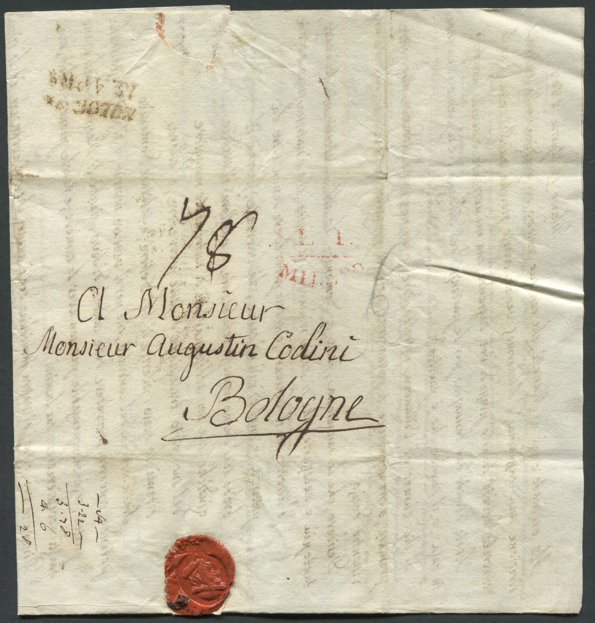 1808, Regno d’Italia napoleonico, Lettera da Milano a Bologna del 13 aprile 1808