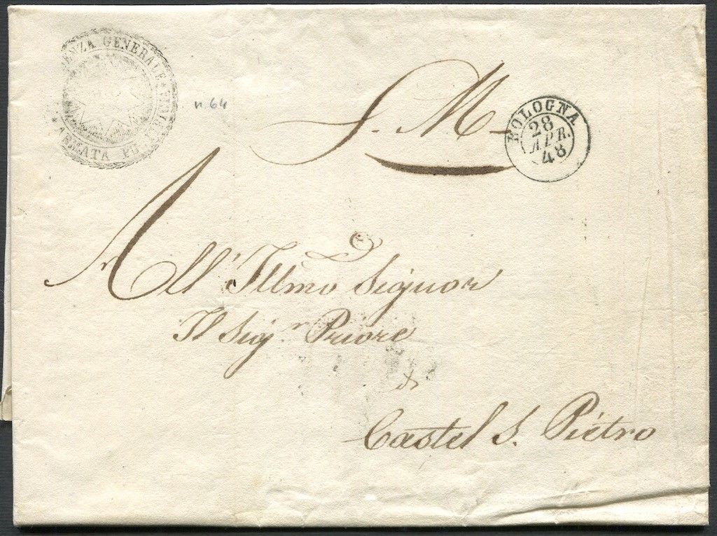 1848, lettera completa da Bologna per Castel San Pietro del 28 aprile