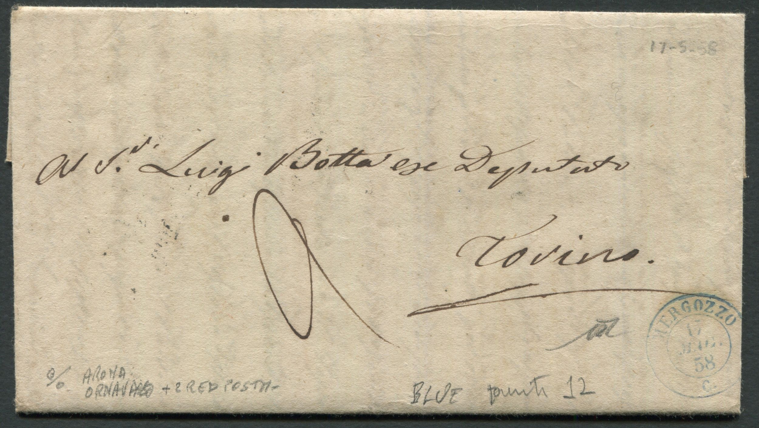 1858, Regno di Sardegna, Lettera da Mergozzo a Torino
