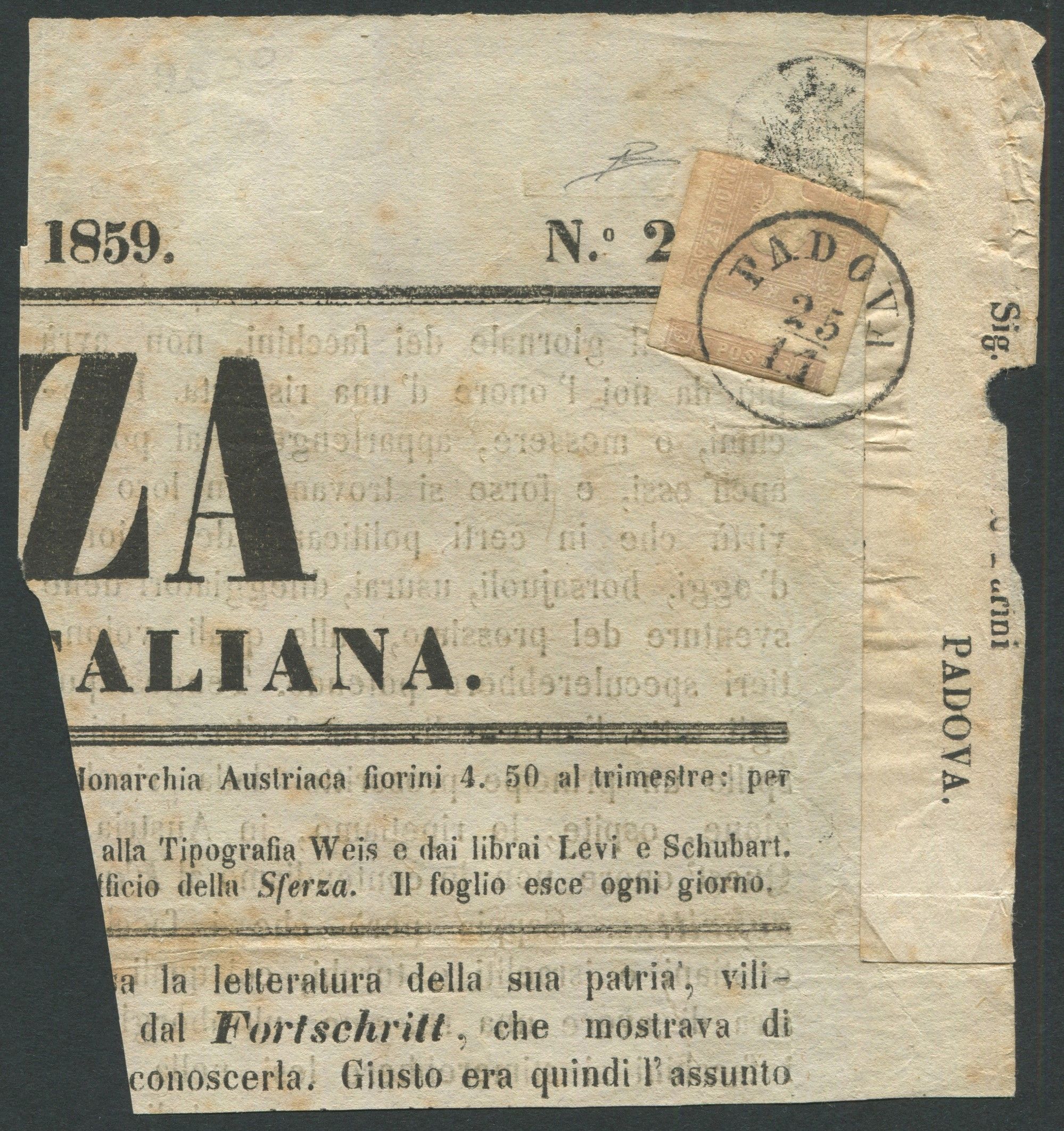 1859, Lombardo Veneto, frammento di giornale da Padova per città del 25 novmbre [..]