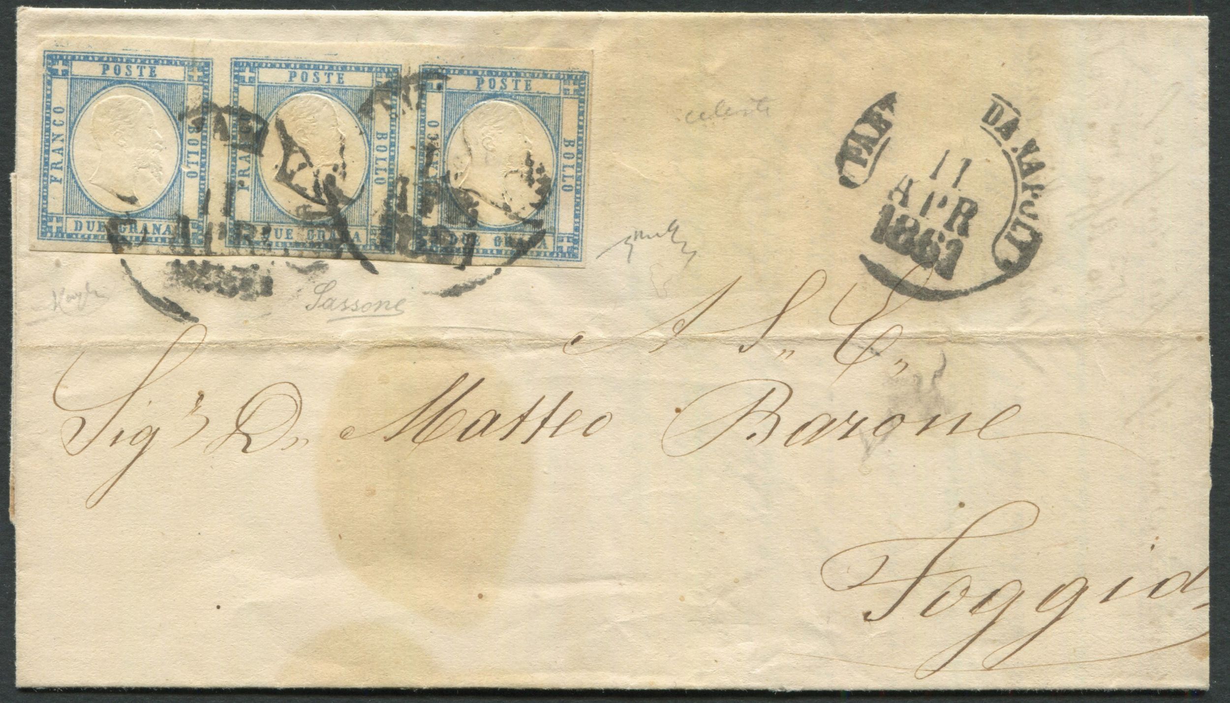 1861, Province Napoletane, Lettera da Napoli per Foggia del affrancata con striscia [..]