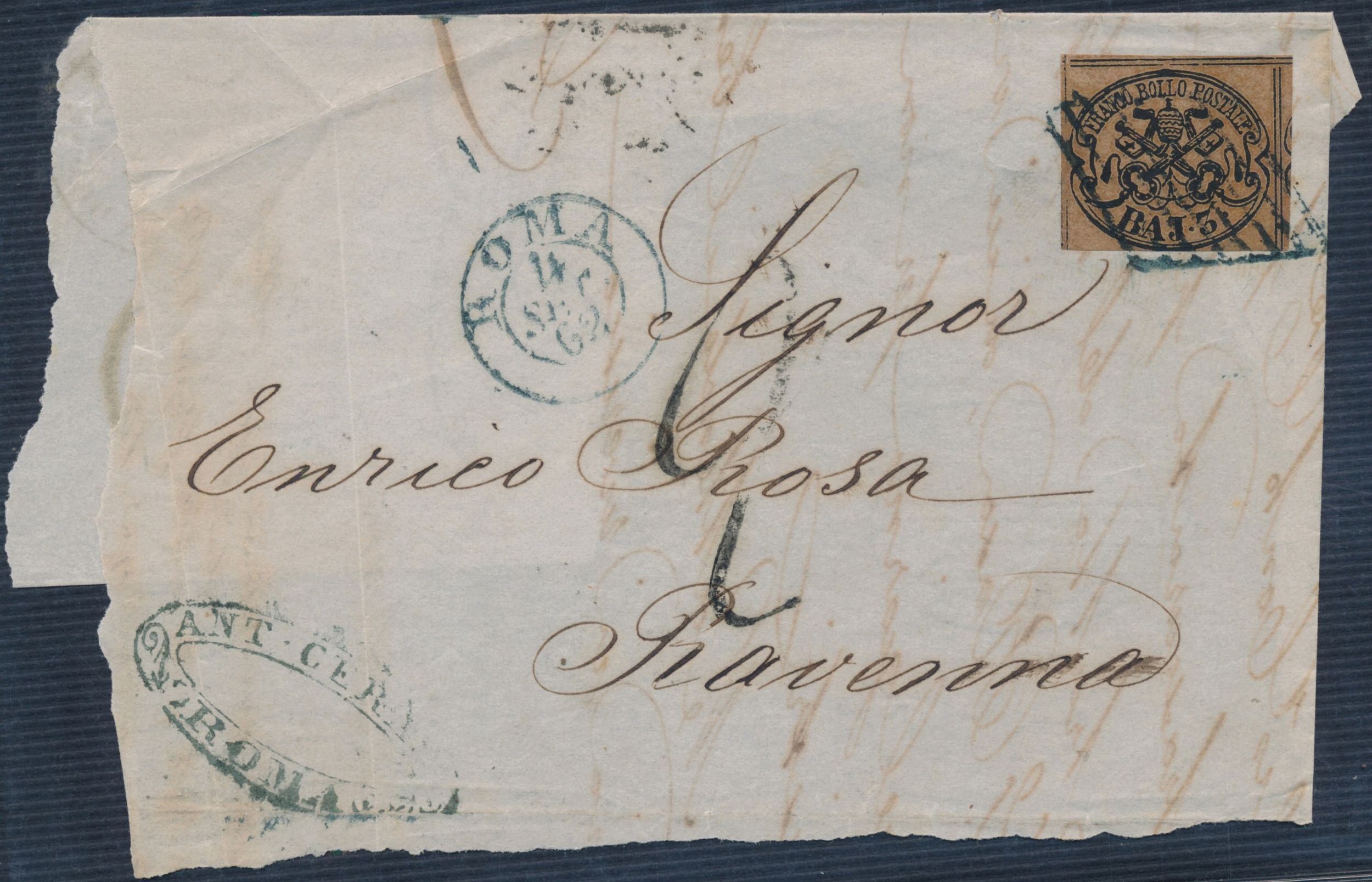 1862, Stato Pontificio, 3b. camoscio (4c), I emissione, su frammento da Roma a Ravenna. [..]