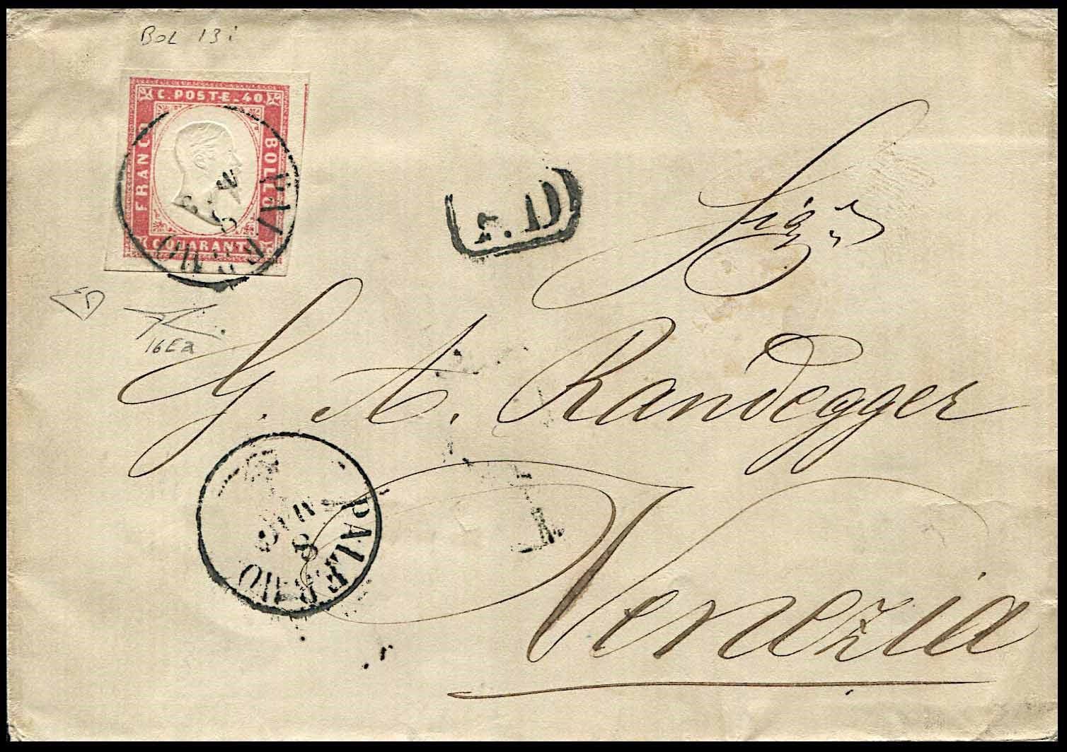 1863, Sardegna, lettera da Palermo per Venezia dell’8 maggio 1863