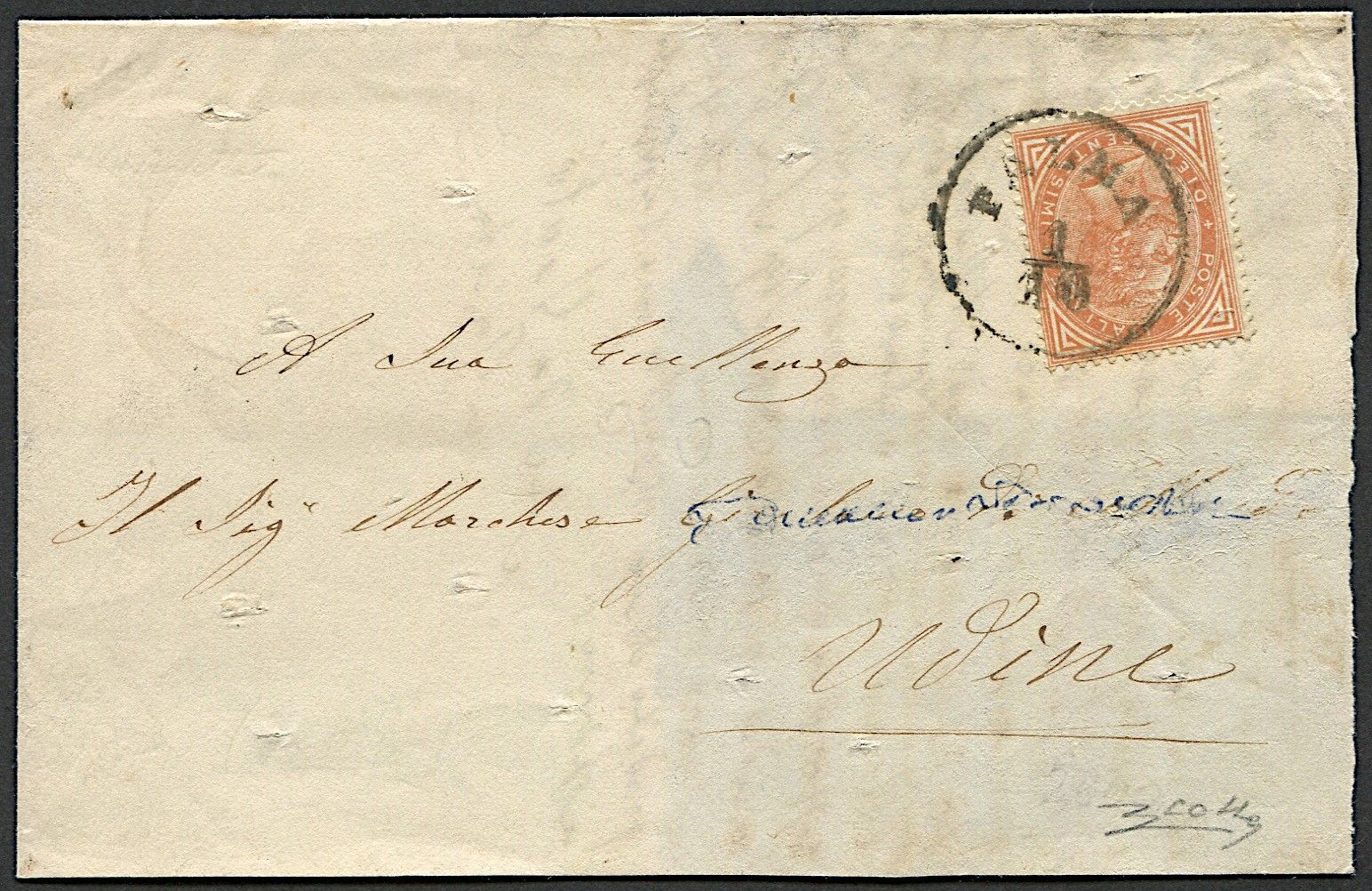 1866, Regno d’Italia, Lettera da Palma per Udine del 1° ottobre 1866