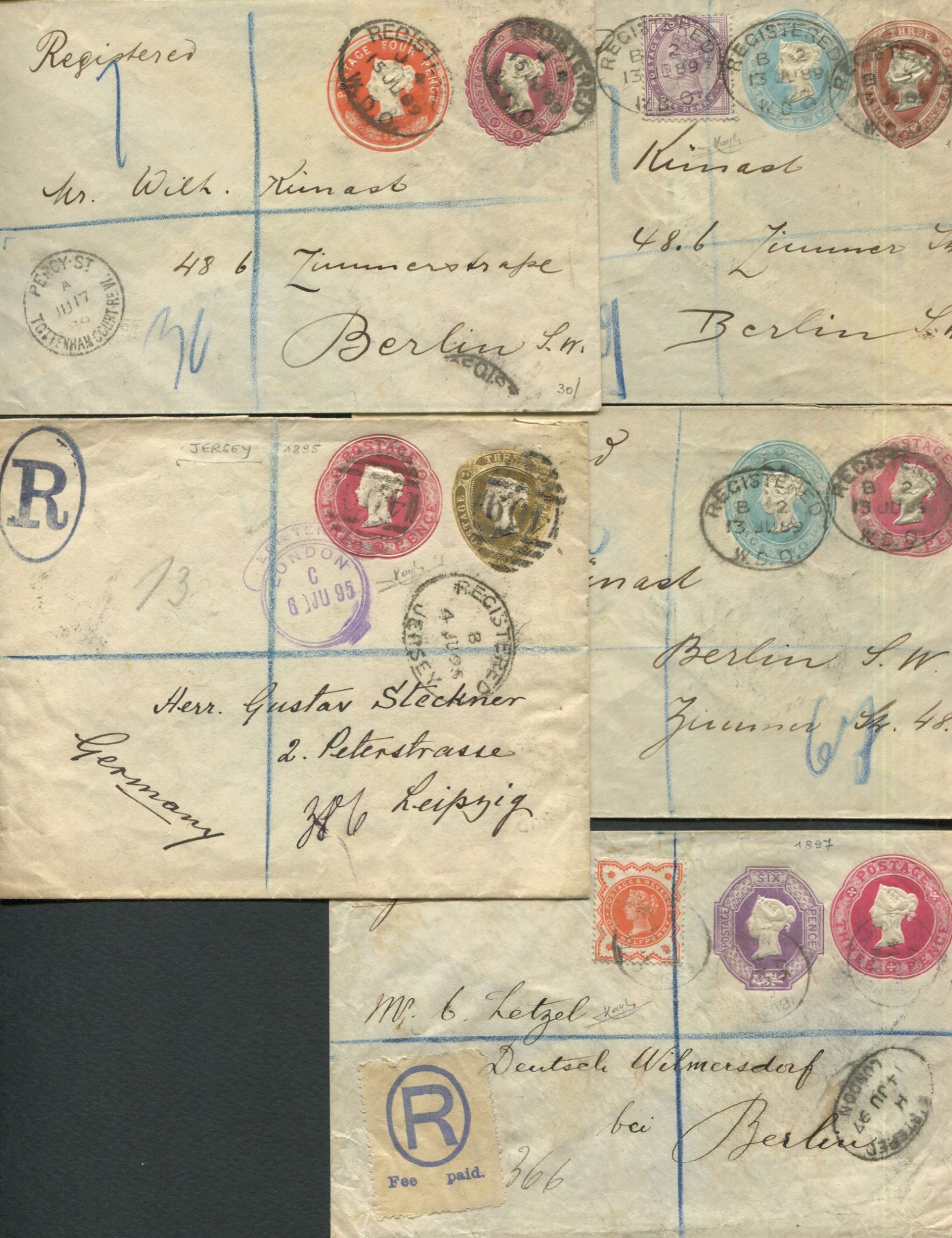 1889/1897, Gran Bretagna, otto interi Postali varie tariffe e destinazioni, cinque [..]