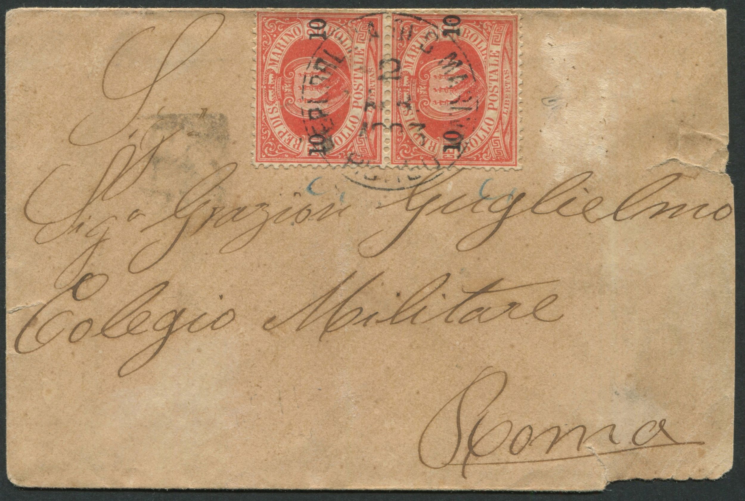 1893, S. Marino, piccola busta per Roma del 2 aprile 1893, affrancata con coppia [..]
