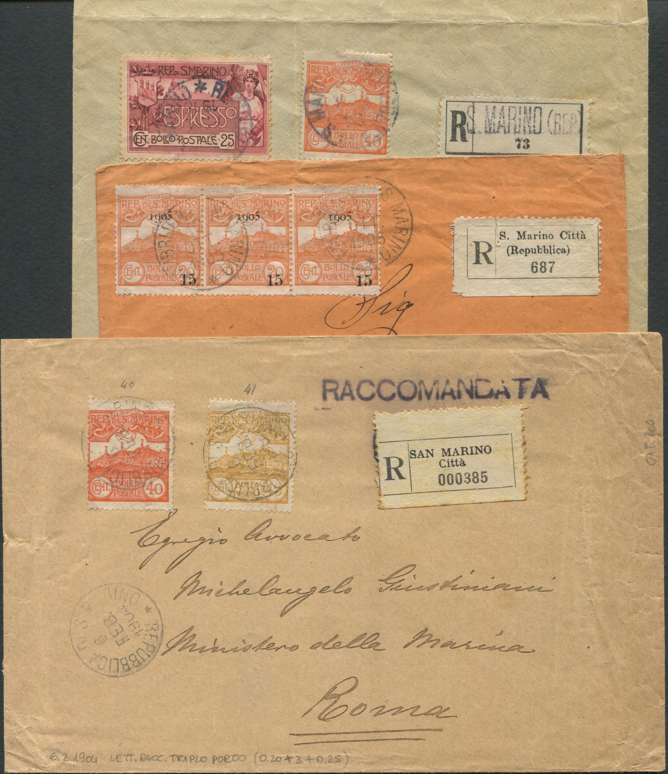 1903-18 - S. Marino, Lotto di 12 lettere e cartoline affrancate con serie Cifra [..]