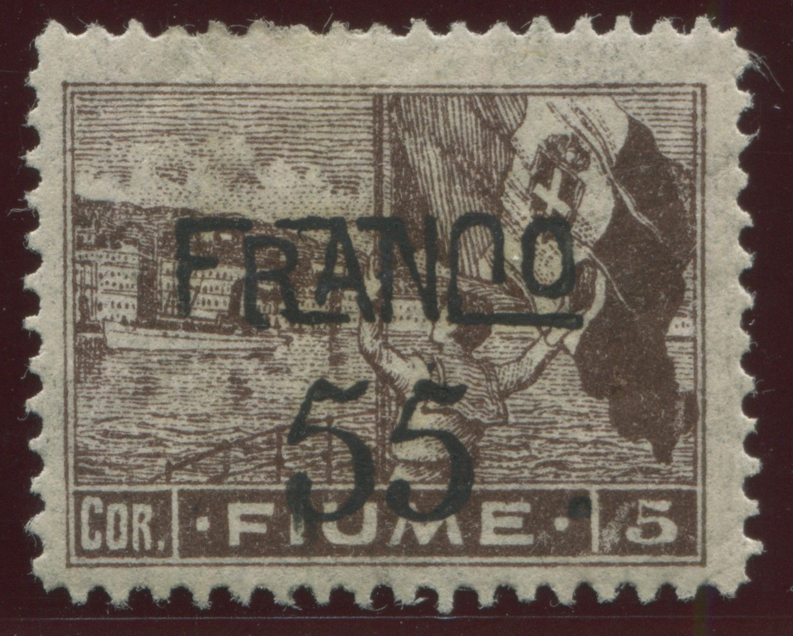 1919, Fiume, serie “Allegorie”, 55 su 5c. cioccolato, carta B (B86)